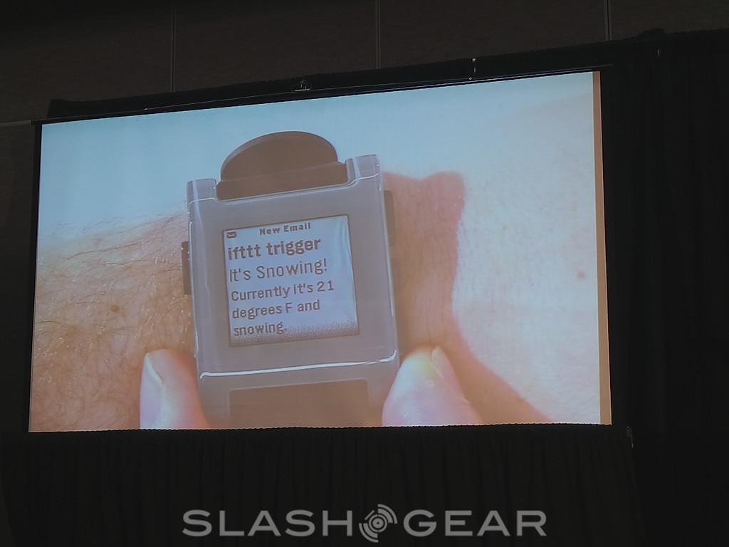 The first Pebble developer SDK is already in limited testing, the company has confirmed, allowing coders to create custom watchfaces for the smartwatch. Pebble is paving the way for new features that won't be in the initial feature-set, too; although it uses Bluetooth 2.1 to connect currently, there's actually a Bluetooth 4.0 chip inside for lower-power wireless in the future, and there's an ambient light sensor which developers will also be able to tap into. On the software side, there's If This Then That integration for extra flexibility. Read on for more details.