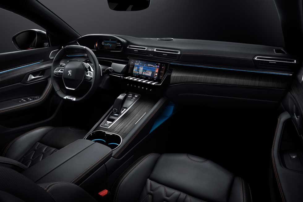 Those options will change light intensity and screen color. The settings let driver and passengers hear with musical-ambience settings and multi-point seat-massage programs. The suspension of the new 508 now uses variable-damping controlled suspension standard on GT and all gas engines and optional on diesel version. The car also has a new 8-speed automatic transmission. There are two gas engine options and four diesel options. The new 508 will hit dealerships this fall.