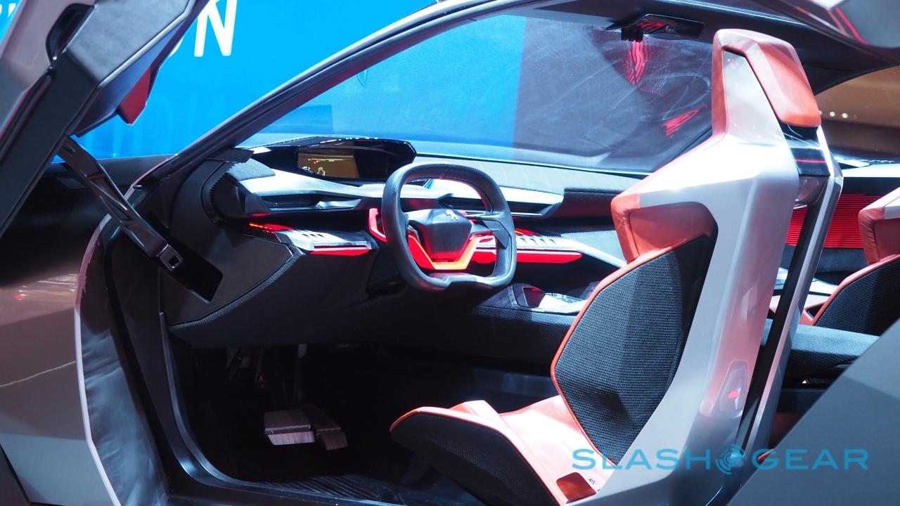 As for the dashboard, Ms Turner gets a head-up display, further information projected onto a polycarbonate strip running across the driver's binnacle, and toggle switches that, when triggered, send flashes of red light down fiber optic cables.