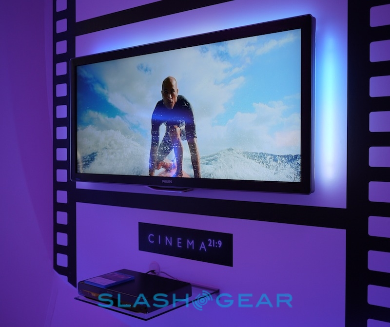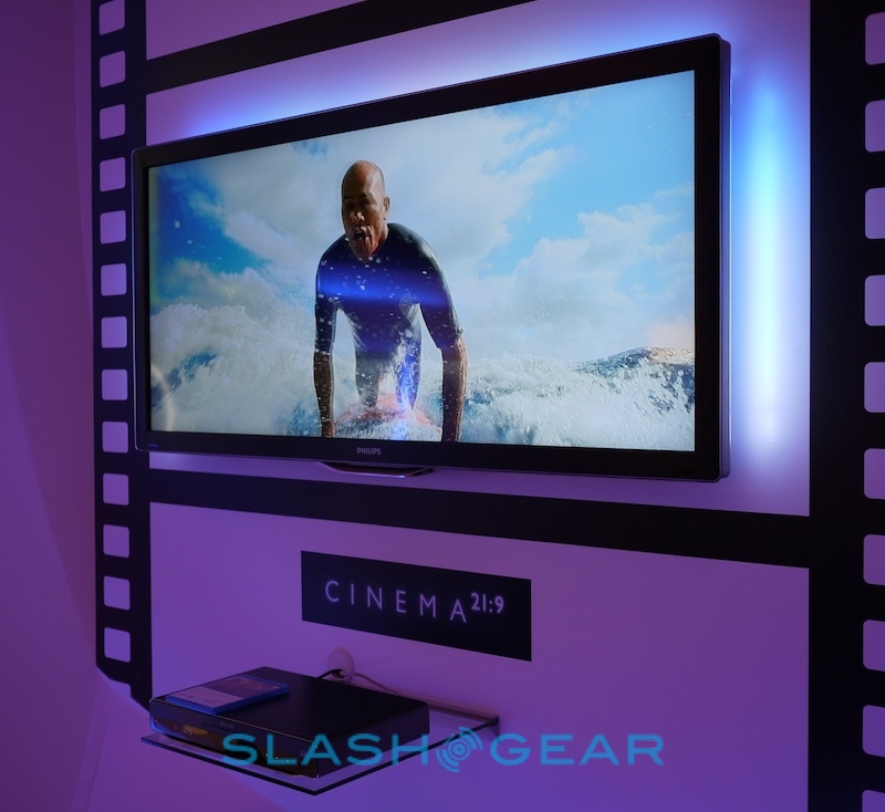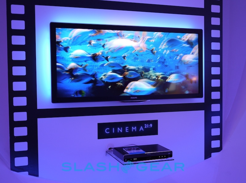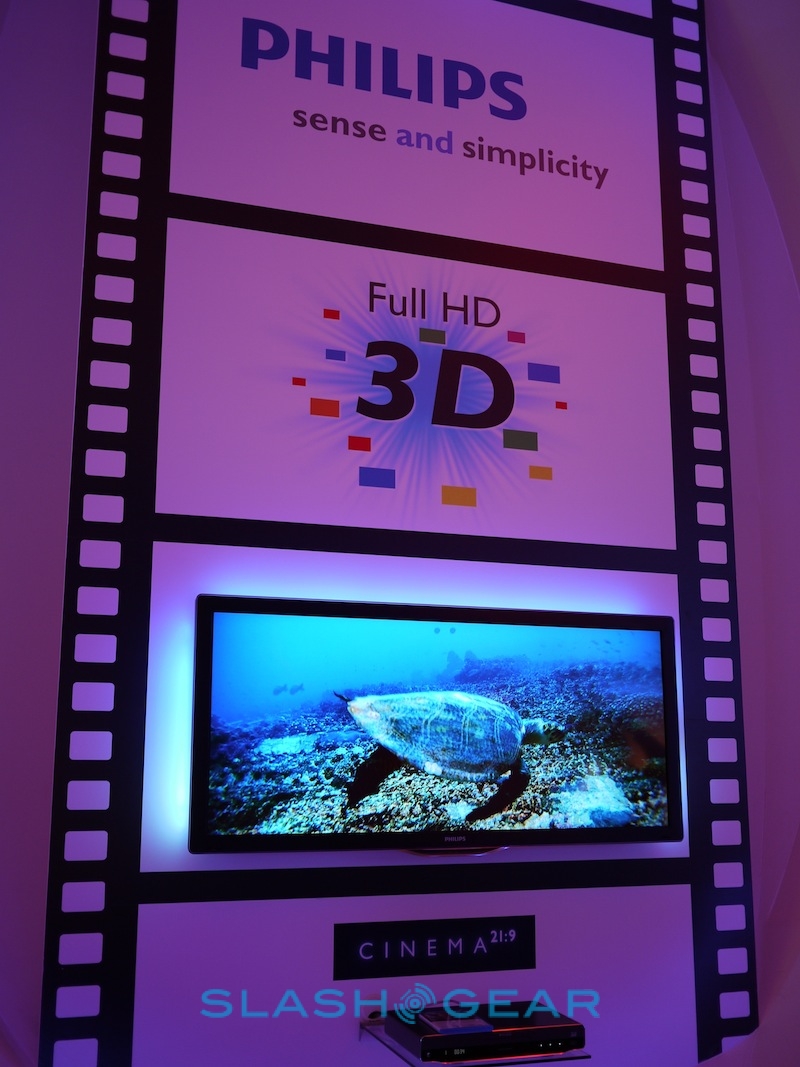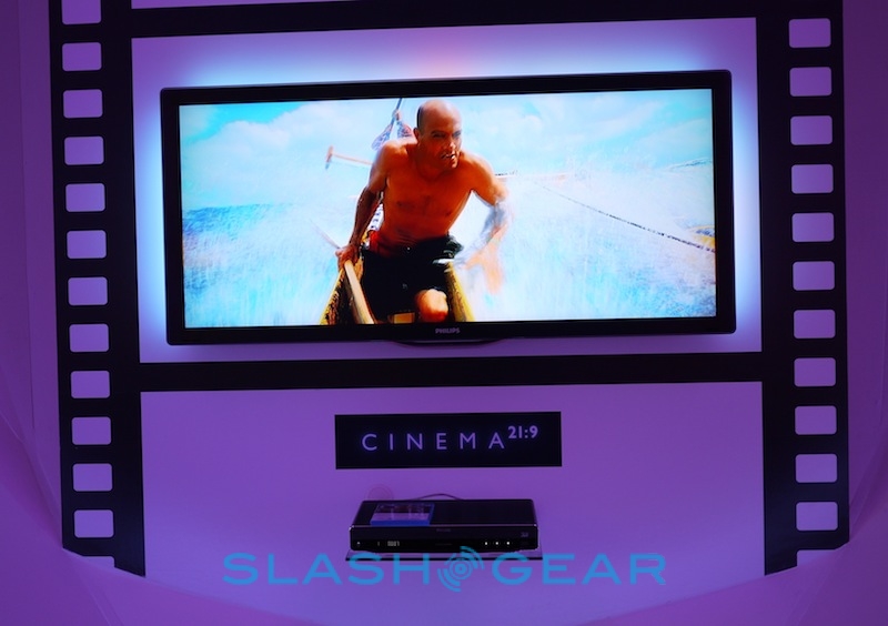 Philips' Android PMP was eye-catching in its own special way, but it couldn't hold a candle to the company's latest 3D Cinema 21:9 Platinum LCD HDTV. As the name suggests, it's Philips' Cinema 21:9 HDTV with an added shot of 3D alongside Ambilight. Meanwhile there are also the new NetTV IP-connected sets, Blu-ray boxes and speaker systems.