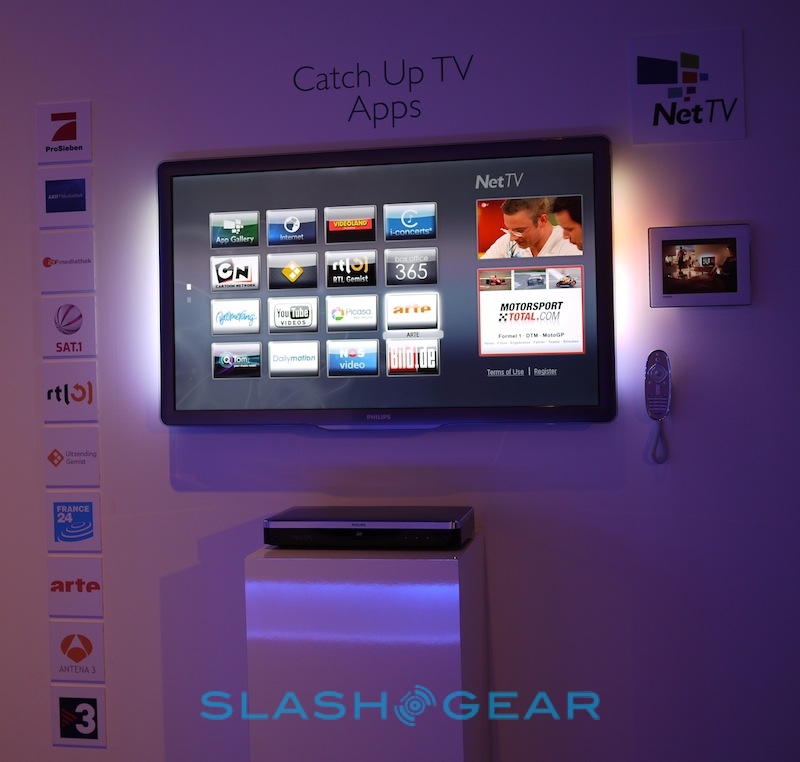Philips has partnered with Sharp and Loewe to produce a standardized IPTV platform which allows for access to YouTube, Picasa, Dailymotion, TomTom, eBay and other content. It's available not only through Blu-ray players but integrated into several home theater audio systems and HDTVs themselves, and the trio of companies are hoping to get other manufacturers onboard so that content or apps from one set will work across the board no matter what brand you pick from.