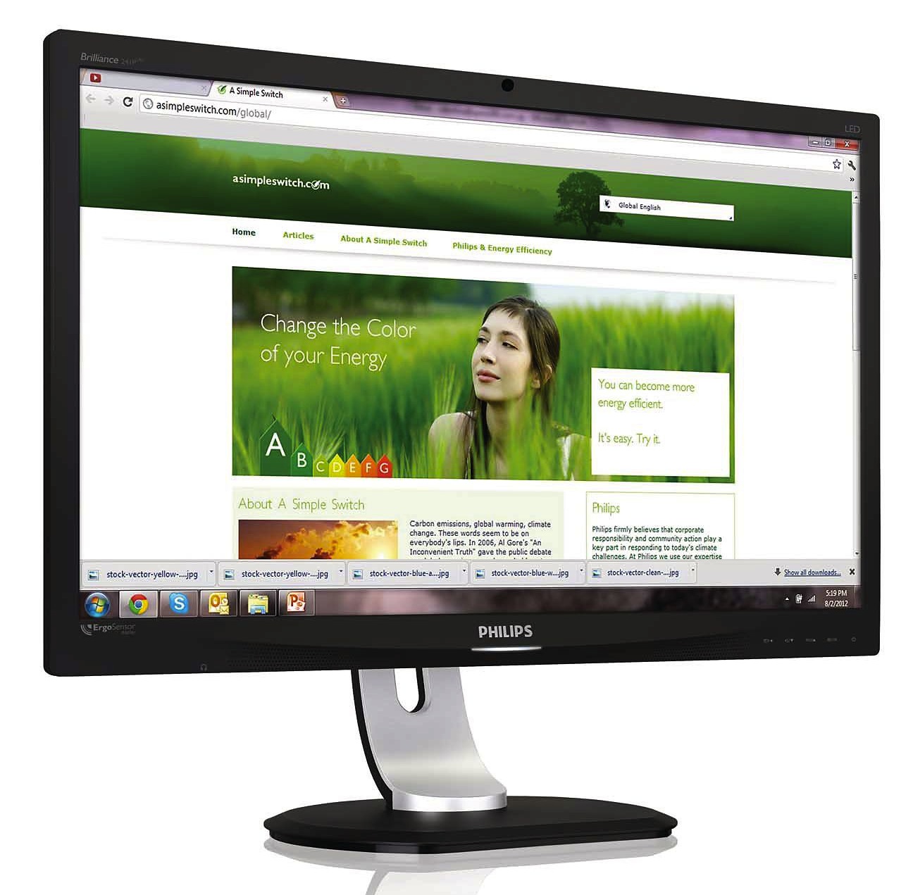 Step away from the monitor, meanwhile, and the ErgoSensor will supposedly realize that there is nobody in front of it and power down automatically. Philips says that's good for an 80-percent power saving. If you want to take it down to zero watts, there's a physical power switch within easy reach on the back.