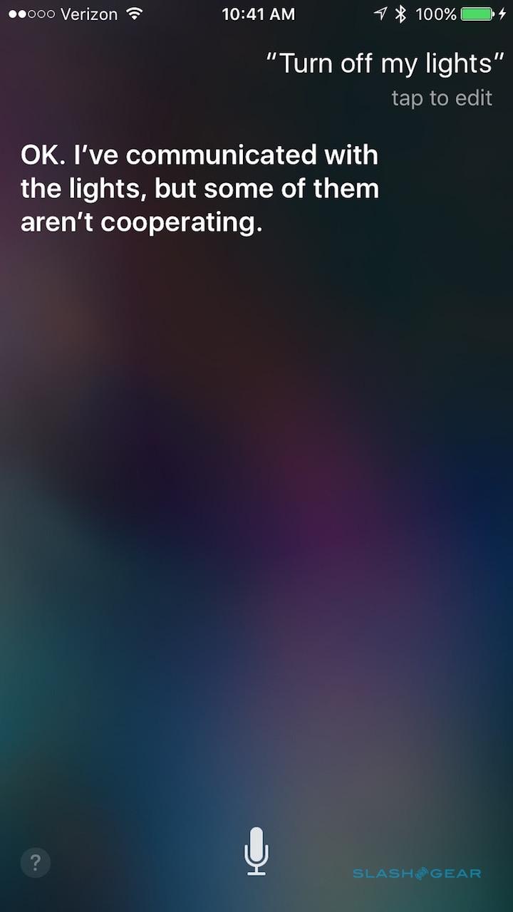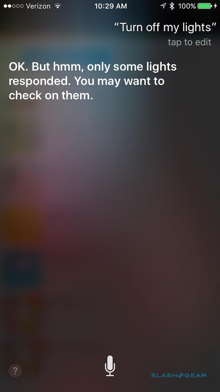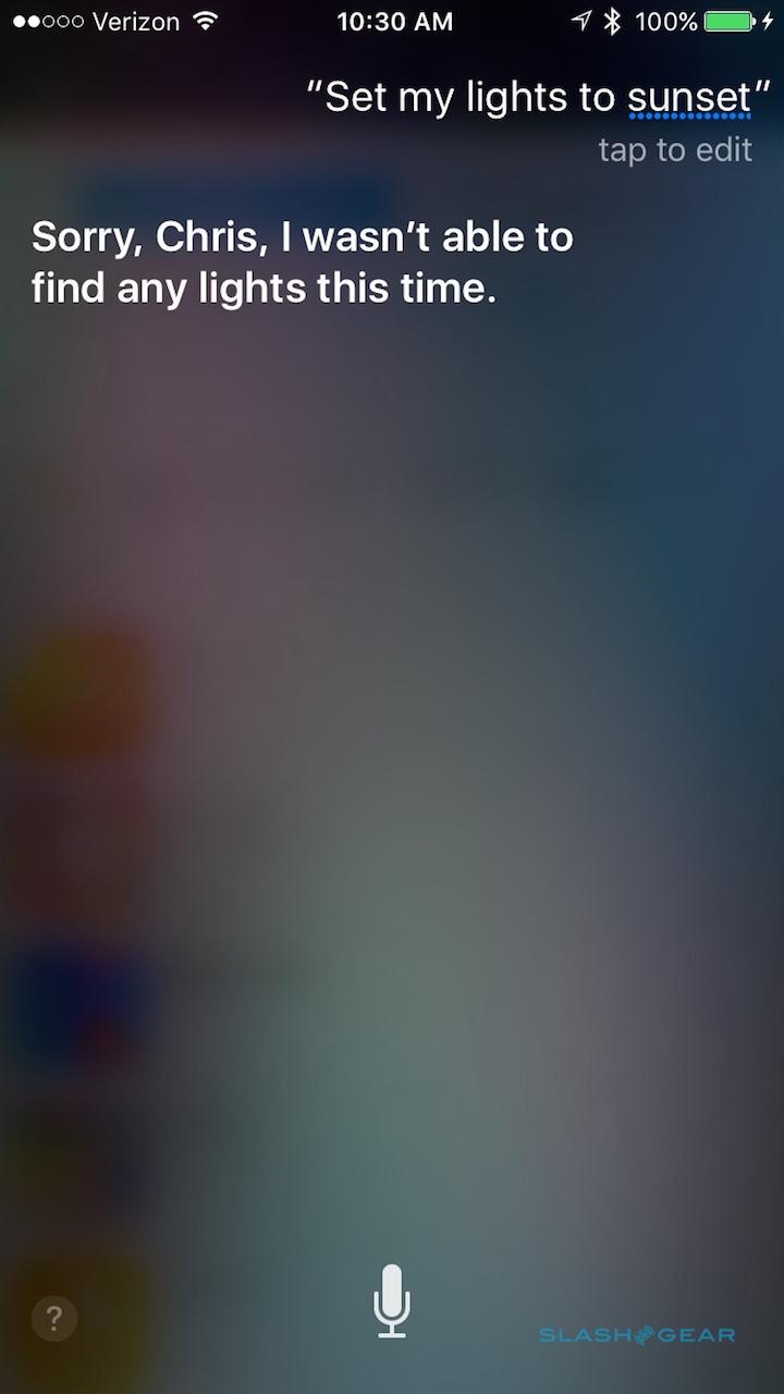 Siri's success rate proved to be mixed, at least with my default configuration. Most scene and lamp names she'd recognize, but some names she had trouble with until I set them to something else. Should a scene contain bulbs that aren't plugged in at that point, Siri points out that one or more couldn't be activated.