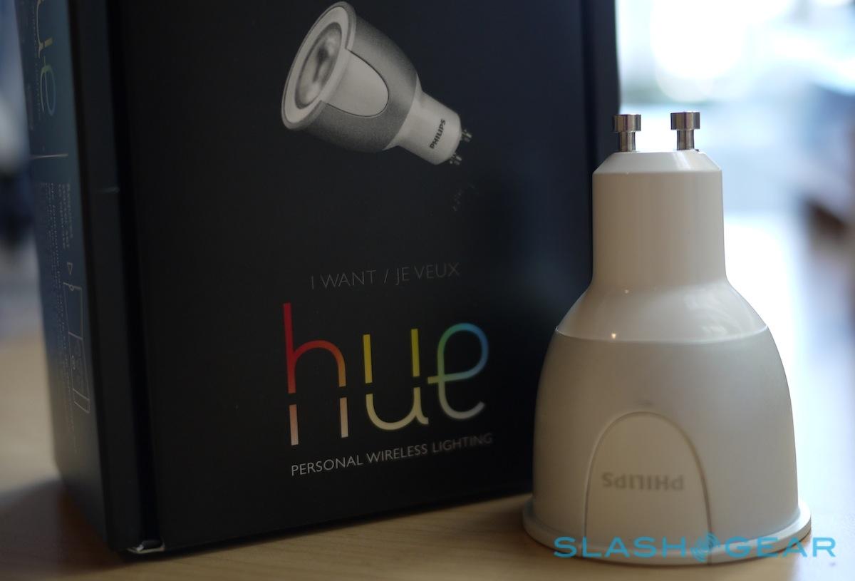 Arguably the European counterpart to the BR30, the GU10 bulb is commonly found in downlighters and track lighting. Offering the same multi-color options, it was a particular challenge for the hue team, so Philips head of lighting technology George Yianni told SlashGear, since the form-factor is so small. New advances in LEDs supplied by Philips division Lumiled were what made it possible, allowing a smaller number of more powerful lights to put out the same brightness as other hue products.