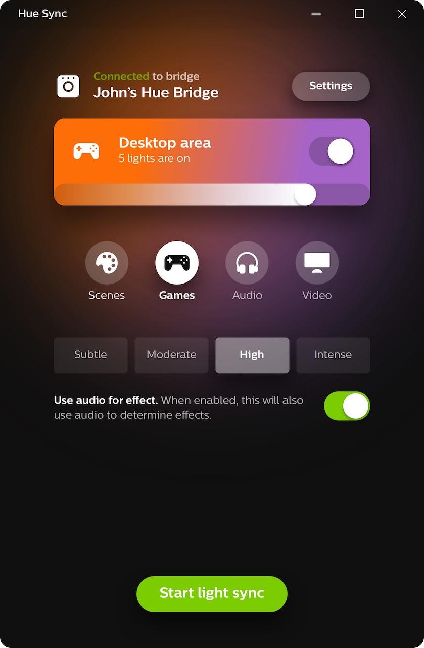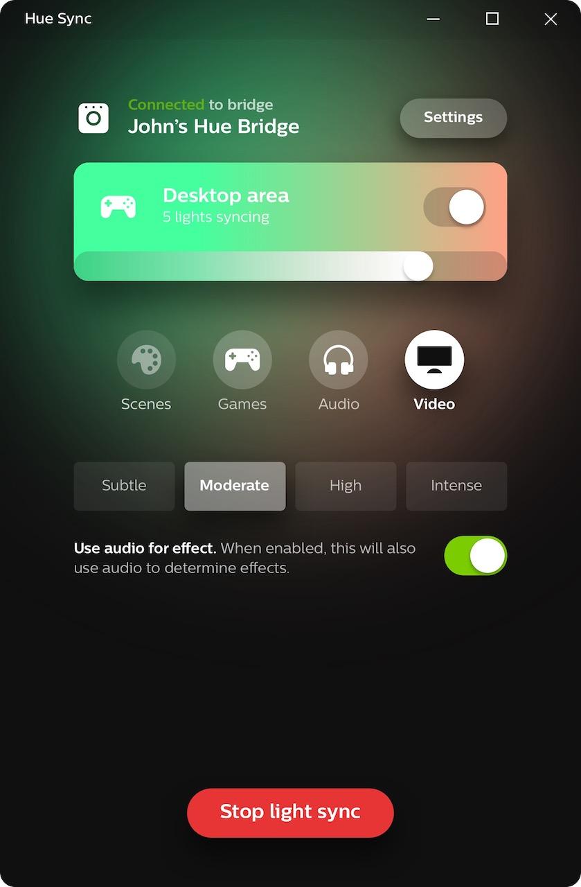 To test Hue Sync out, I set up a handful of Hue A19 color bulbs and a Hue Light Strip around an iMac. The flexible LED strip went behind the computer, while the color bulbs flanked it. I then set up a new entertainment group in the Hue app then, with the Hue Sync app installed on the Mac, I could have the lights automatically react to what was happening on-screen.