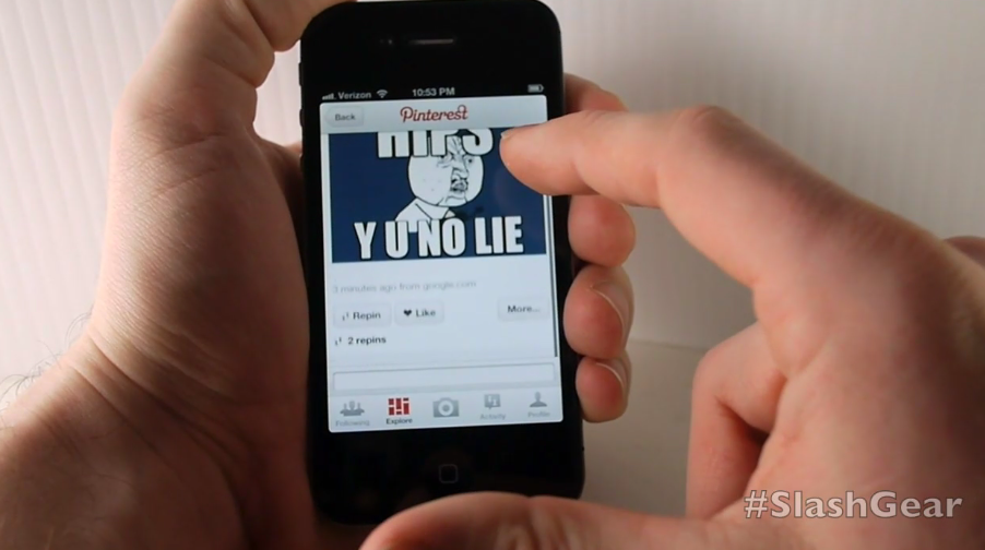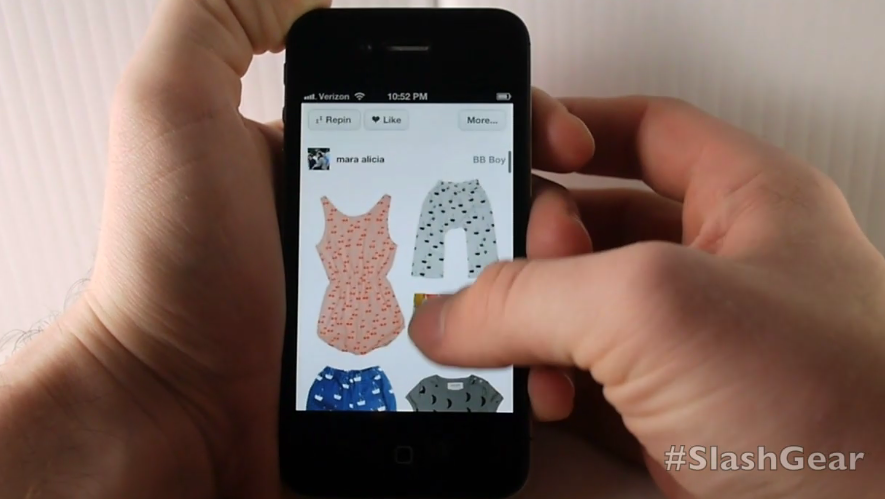 As the sharing environment and website known as Pinterest gain heavy steam in the art and design community around the world, it's only natural that the developers behind this already massively successful platform would create a mobile app. It's the iPhone 4S we're taking a look at Pinterest's version 1.4.2 app with, and it's the iPhone that this app is made for. What you'll find is that not only do you have most of the abilities you've got in the web browser version of this app at your disposal, the fact that you've got Pinterest in your hand rather than on your computer screen makes it more entertaining than ever before – and that's saying something, Pinterest is addicting!