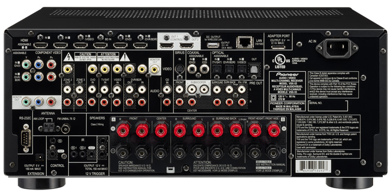 Moving on the VSX-52 has seven HDMI inputs, 110W per channel, adds Pandora, Rhapsody and SiriusXM streaming support, various image processing tech like Marvell's Qdeo, and video output to the second audio zone. Finally, the VSX-53 has seven HDMI inputs and two outputs, three zone audio out and two zone video out, and, like the VSX-52, is THX Select Plus certified.