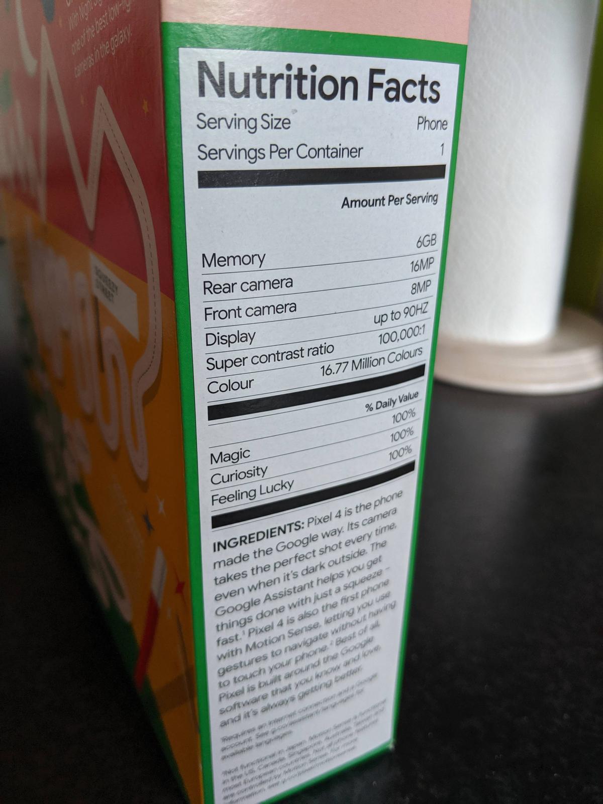The Pixel 4 cereal box, which recipients will most likely treasure for posterity, was Google UK's way of thanking some of the first believers in the Pixel 4. It is also reminding pre-order buyers, whether they received a cereal box or not, that they're eligible for a free HP Chromebook 14 within 14 to 45 days of purchasing the Pixel 4.