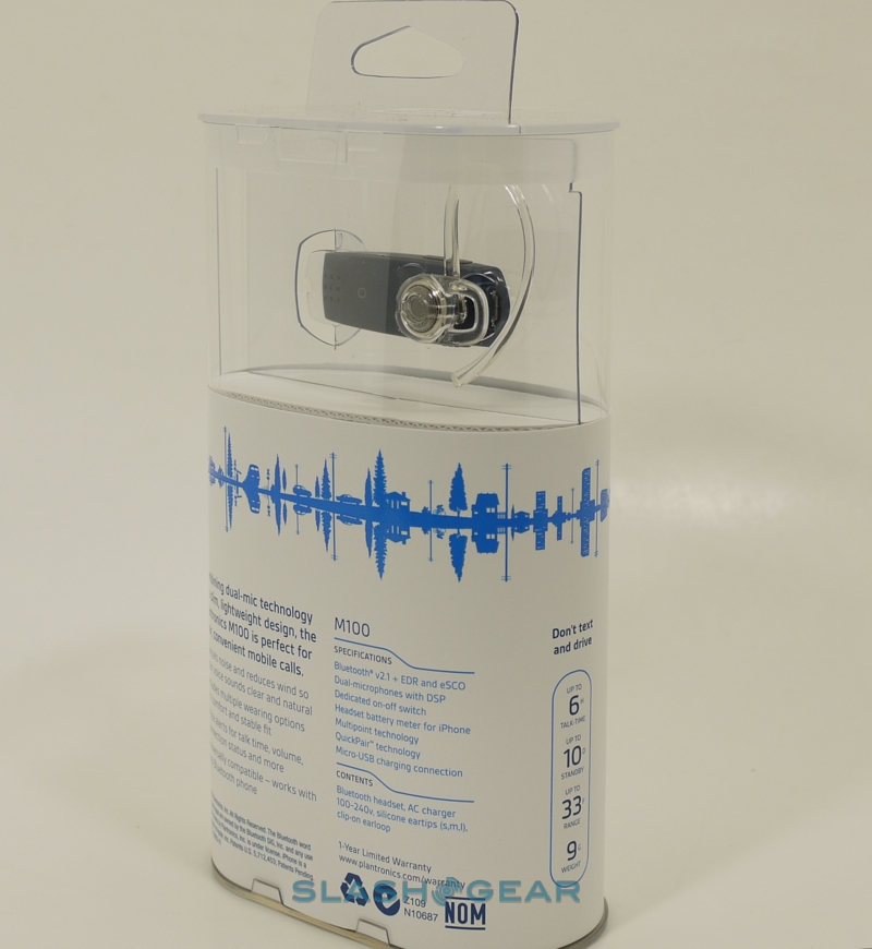 Plantronics is a Bluetooth headset brand we're very familiar with here at SlashGear, having tested the company's past few generations of models. Of course, that developing heritage can be both a blessing and a curse: the bar is set high, and any new headset needs to not only offer performance to match the price-tag but justify its existence over its predecessors. Next up is the Plantronics M100, a compact dual-microphone headset with a relatively compact $79.99 MRSP. Can its iPhone integration and other functionality keep it distinct not only from rivals but previous models? Check out the full SlashGear review after the cut.