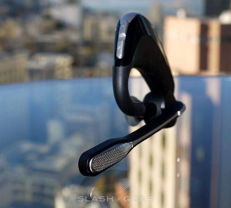 Plantronics believe the key to the premium market is enabling straightforward multitasking with solid audio performance, hence the Savor M1100's triple-microphone array and the bundled one year subscription to the new Vocalyst service. Bearing the company's A-frame design, the Savor is a reasonably short and – at 9g – lightweight headset, though it's surprisingly thick; Plantronics tells us that's to accommodate the larger battery required for the three microphones, though the M1100 still tops out at 4hrs talktime.