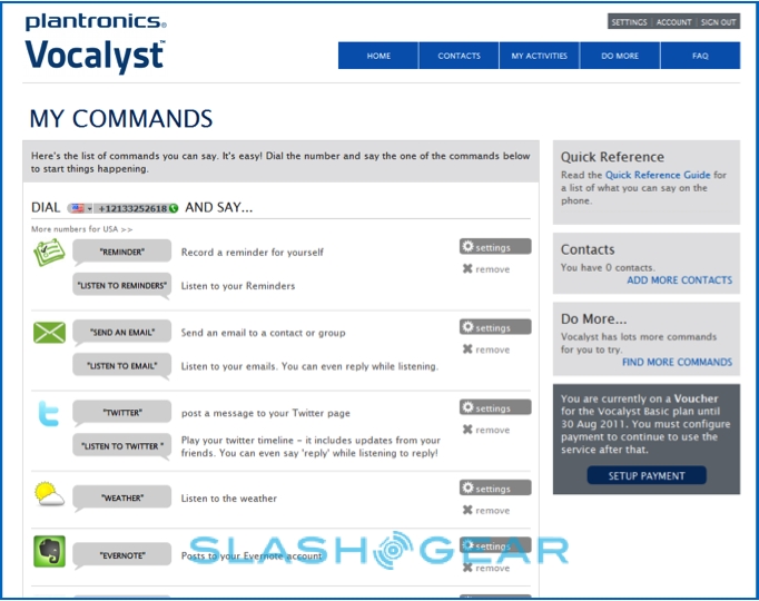 Vocalyst is Plantronics' branded voice-control service, built on top of Dial2Do recognition technology, and the Savor M1100 comes with a year's subscription. It requires some setup online first – to register various email and other accounts, for instance – but once that's done it's designed to be solely operated by voice. You can tap the voice command button and say "send an email" or "listen to email" and either dictate a message or hear your inbox read out, say "Reminder" and dictate a memo that's automatically transcribed and emailed to you, or even hear and post Twitter messages. News, sports, weather and finance headlines can be read out, you can send new notes to Evernote, and if you have a BlackBerry or an Android device there's a free app that will read your SMS messages too.