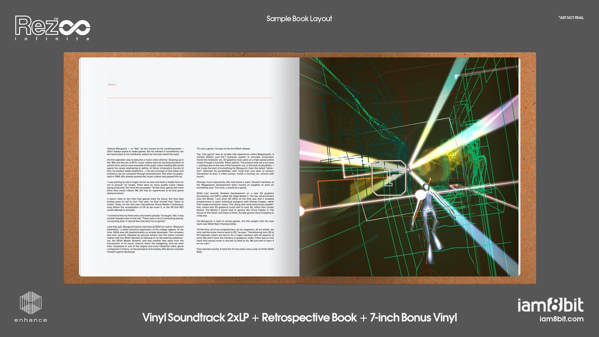 The art book features full-color concept art and screens, and contains a retrospective of the game by creator Tetsuya Mizuguchi, along with interviews with the original development team.