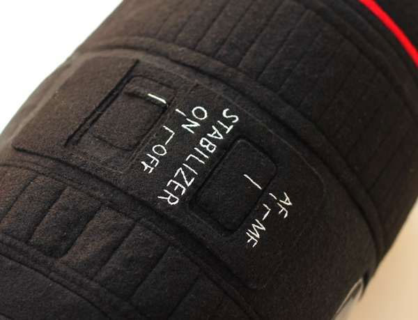 They are dubbed the Plushtography Pillow and there are a few different styles. The big one is a 24-105mm lens reproduction. It is made from felt and fleece. The fleece sounds fine and good, but anything I have ever touched with felt on it has been itchy. Granted these are more for looks than actually laying on. I bet you could pwn in a pillow fight with the big lens version.