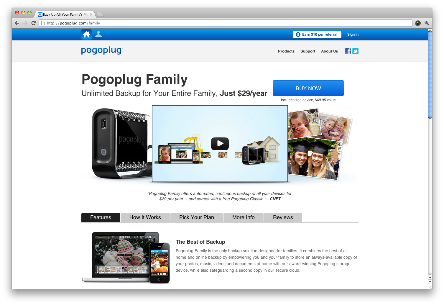 The new system works with both Pogoplug Family and Pogoplug Team accounts, so whether you're using it at home or in the office you'll be able to add in a cloud storage option too. Family plans kick off at $29/year for 100GB of offsite cloud storage, with 300GB for $49 and 1TB for $99. All new sign-ups to Family plans will get a free Pogoplug storage device, as a limited-time promotion, too.