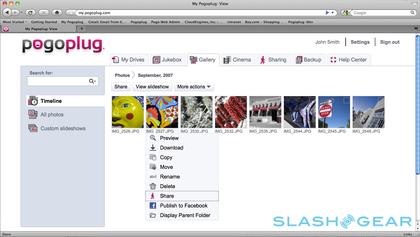 The recipient of a sharing email can, depending on how you've set up the invite, be prompted to create a (free) Pogoplug account or, alternatively, access the files simply by clicking on the link. It's all browser-based, and galleries are automatically animated into neat, parent-friendly slideshows.