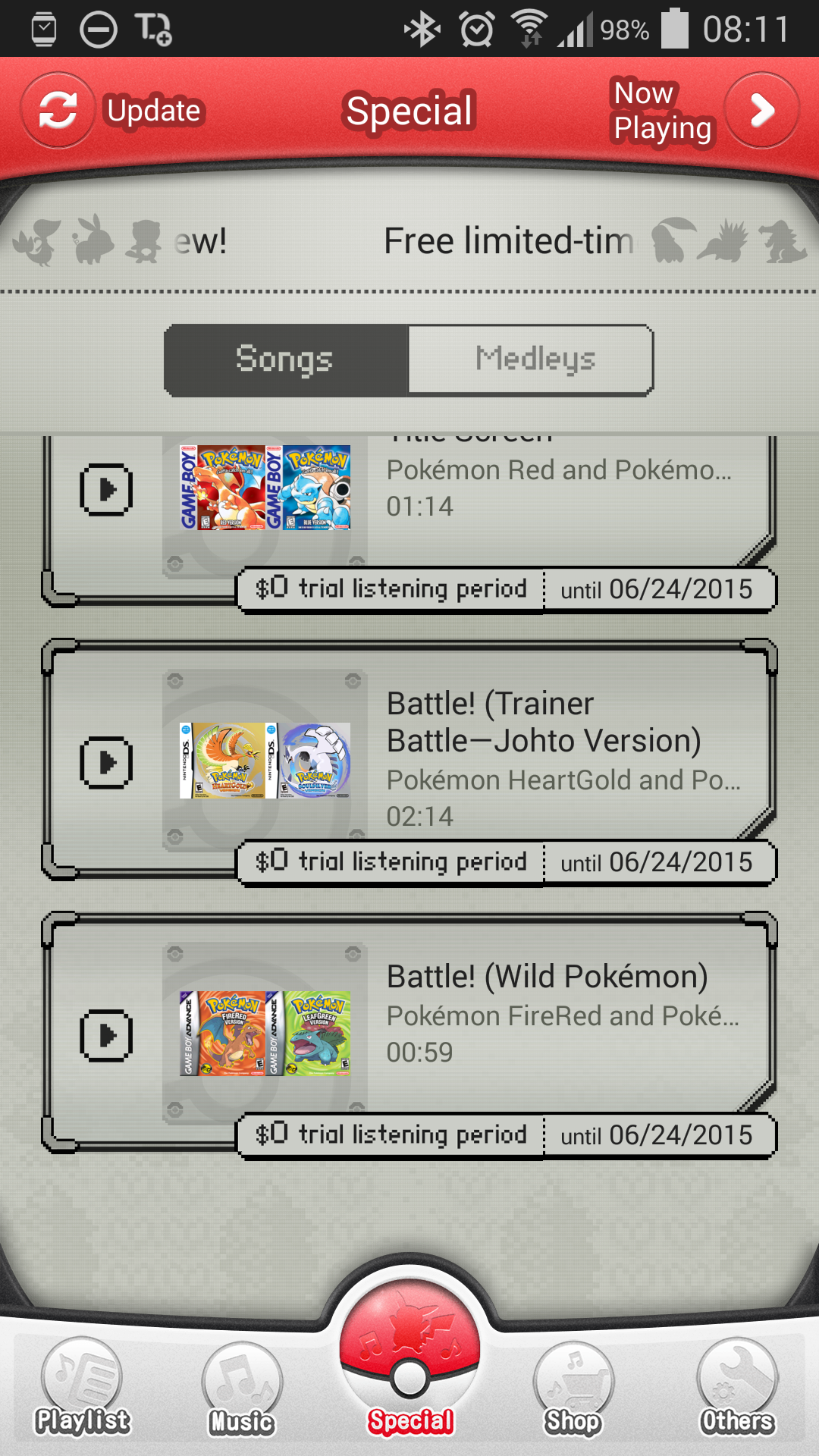 As its name suggests, Pokemon Jukebox is focused solely on the music of the game. For die-hard fans, that might just be enough of a teaser of sorts. That said, it is almost deceptive. This app is, for all intents and purposes, more like a fancy interface for a store that just happens to have a music player built-in. Of course, these days it's not longer unusual to actually pay for content, but for very short pieces of music, it might be a tad too much. Fortunately, you can actually listen to up to three songs for free each day.