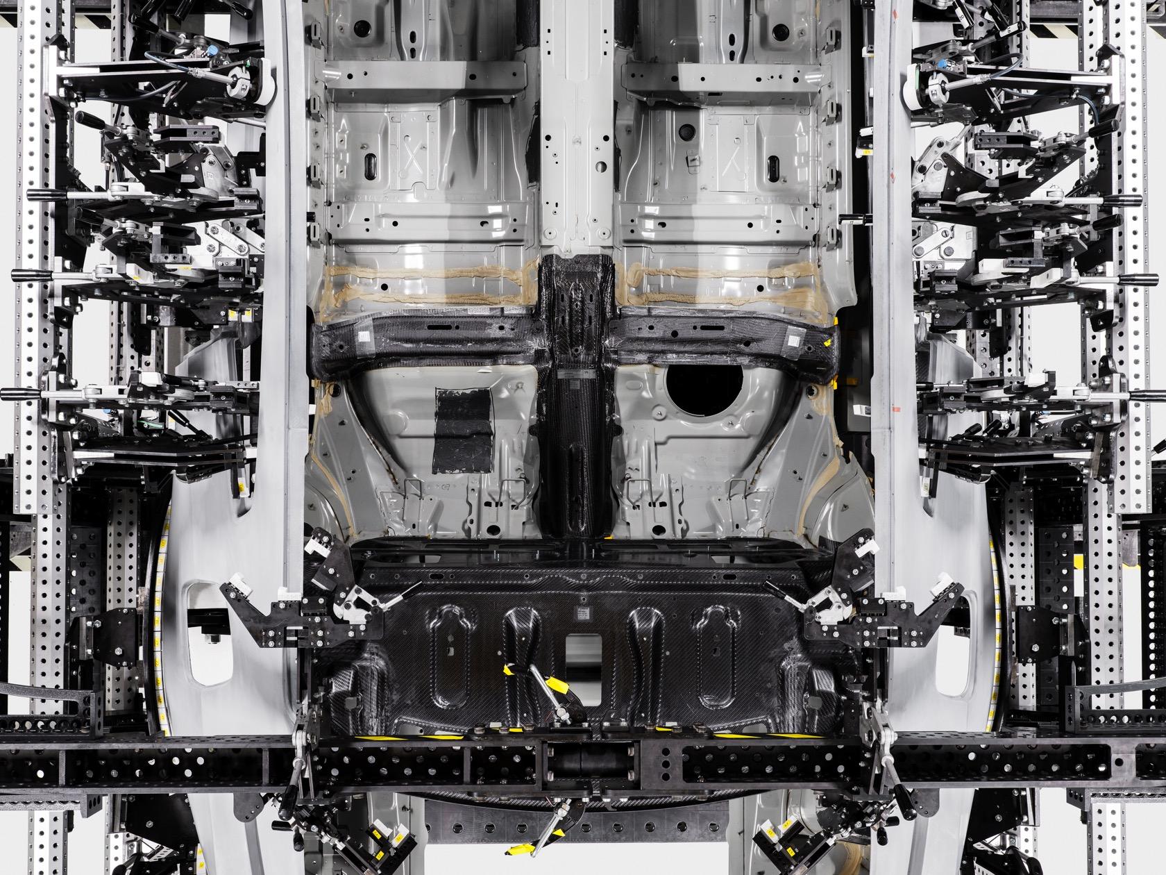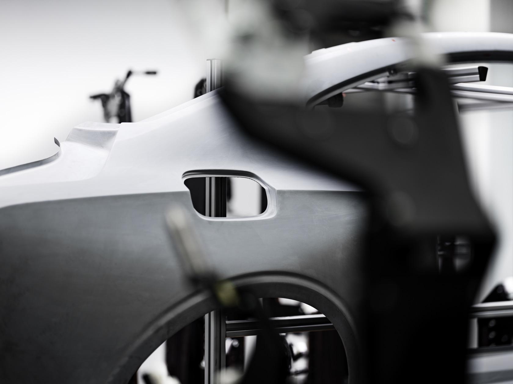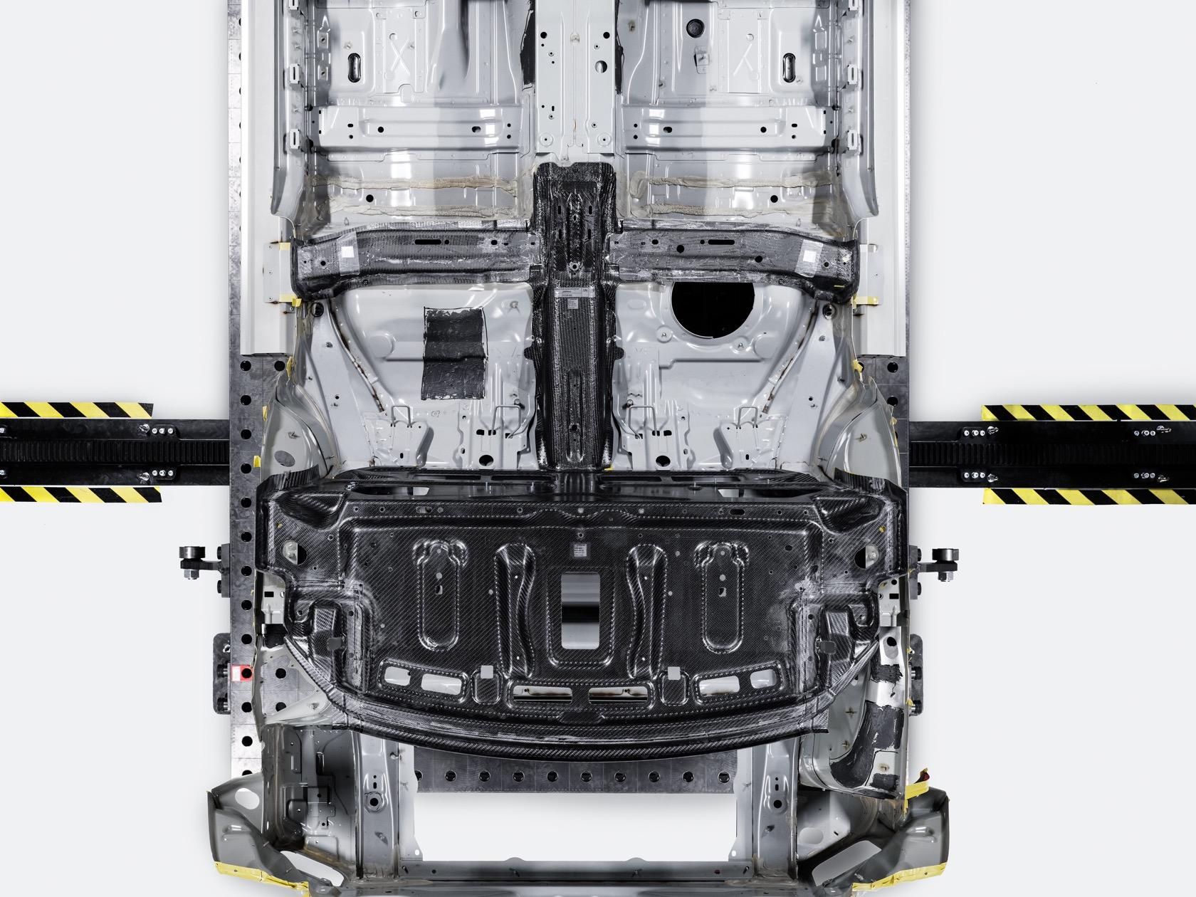 Arguably the most important CFRP part, though, can't be seen, only felt on the road. Polestar describes it as a "structural dragonfly": a section of the material shaped like the insect, and which is bonded to the Polestar 1's chassis. Its "limbs" improve torsional stiffness between the middle floor a rear construction and, the automaker claims, improve it by 45-percent.