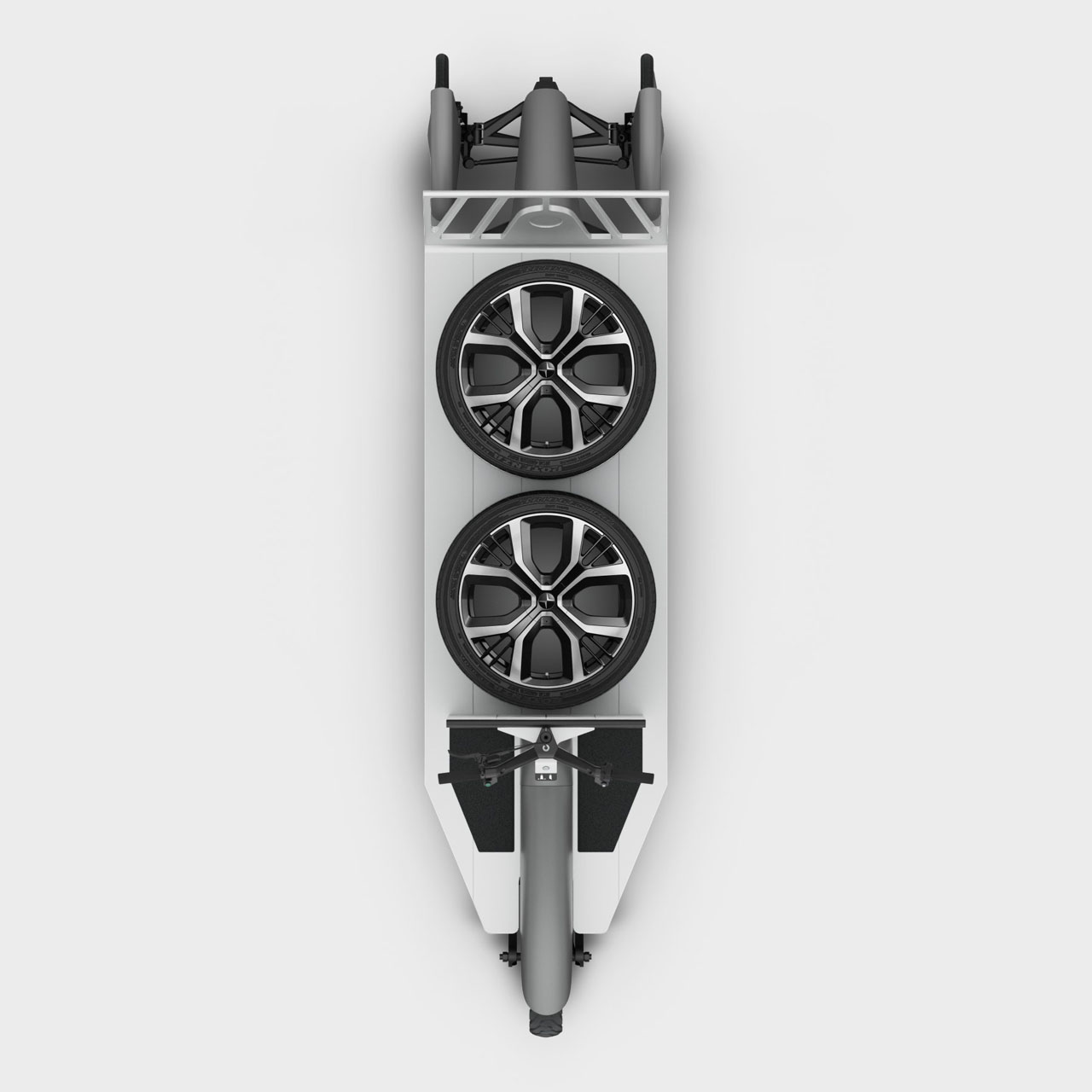 The chassis is made from aluminum and features a tilt mechanism that operates on electricity allowing it to lean in a turn like a motorcycle to improve stability. The bike is highly maneuverable able to turn around completely in less than 23 feet. Stopping power is courtesy of disc brakes.