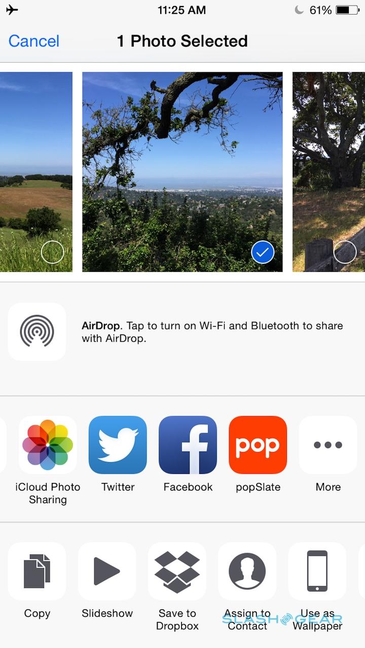 I wasn't able to test out the IFTTT integration, so had to resort to more basic ways to get content other than photos to show up. popSlate adds a button of its own to the iOS share menu, for the gallery at least, but if you want any sort of text – say, from the browser, the Notes app, or your email – you have to do a screenshot and then transfer that over as a photo.