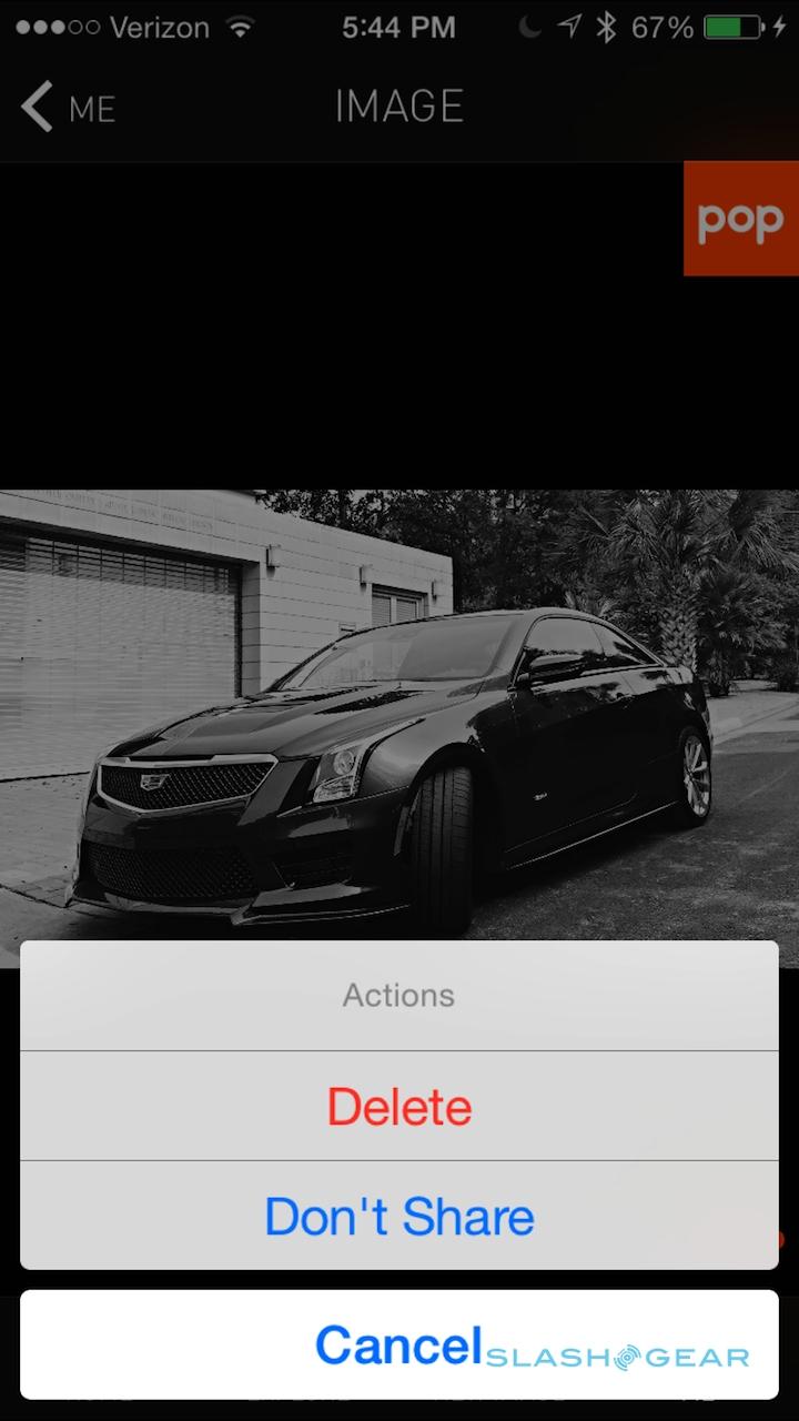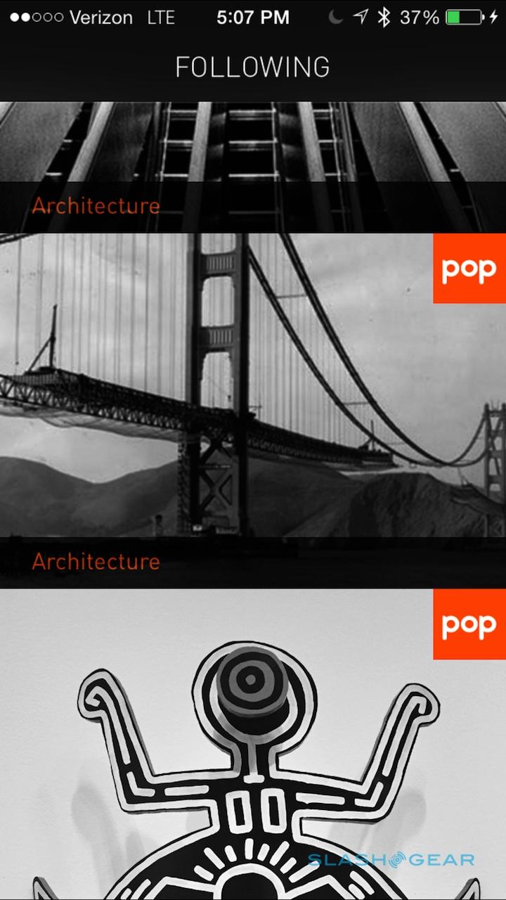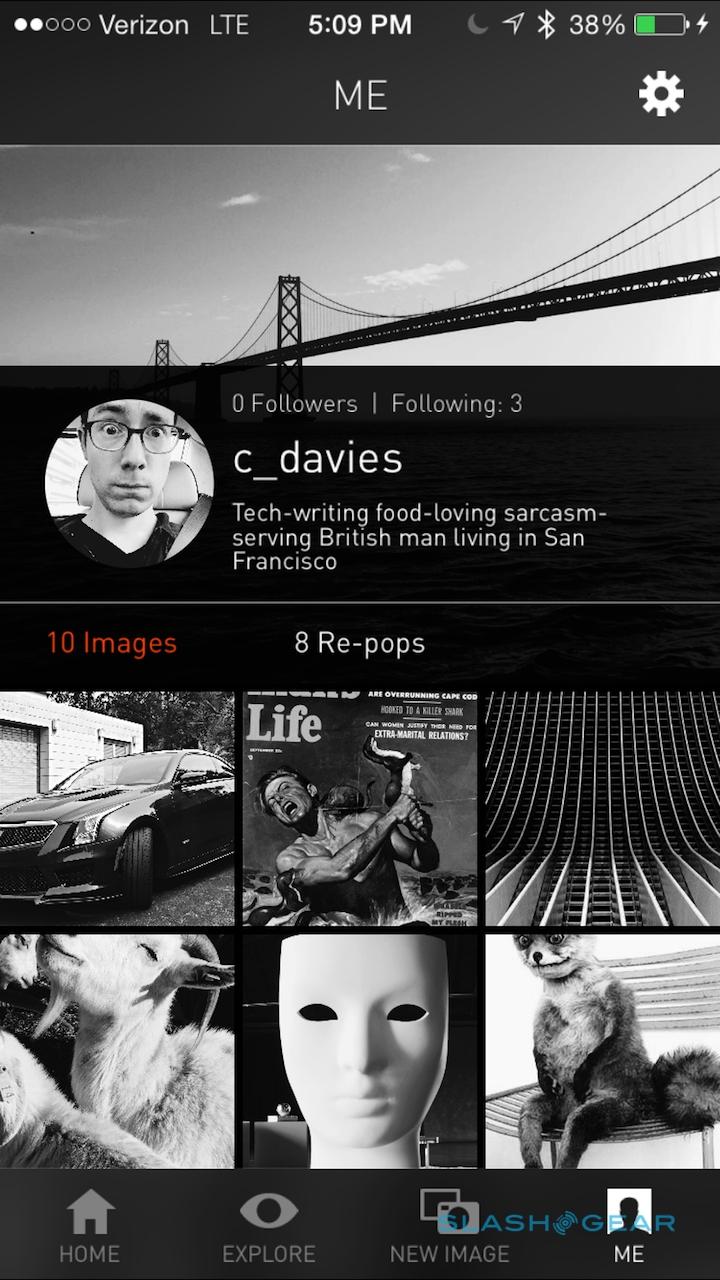popSlate calls that a re-pop, but you needn't be reliant on other people sharing images of note. You can either snap a photo or use a pre-existing one, choosing whether to also share that on your public profile (so that others can re-pop it) or keep it private.