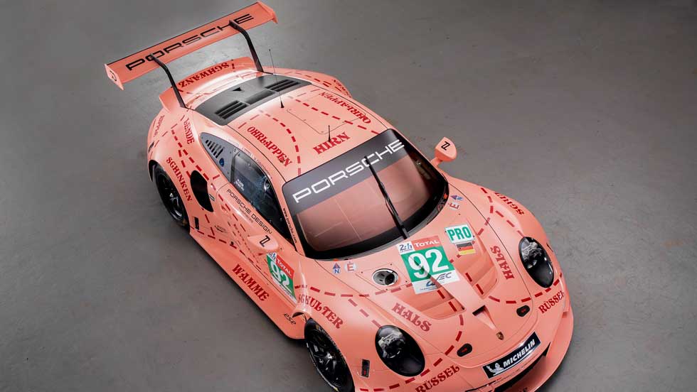 Porsche has shown off the sweet racing cars that it will field at the Le Mans 24 hours race. The two cars are 911 RSR racers and one wears iconic Rothmans livery and the other a pink livered dubbed "Pink Pig." Both are throwbacks to classic liveries that have been seen on the racing rack before.
