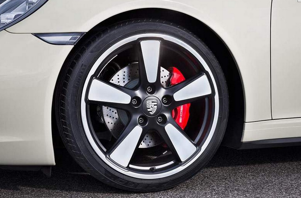 Officially called the Porsche 911 50th Anniversary Edition, this model – pictured above – has a flat-six rear engine, and as such also has rear-wheel drive. Suspension is said to be "active sport" called the PASM: Porsche Active Suspension Management. Porsche says this complements the extra width for both combined to give the car "exceptional cornering." There's also a sport exhaust designed to give the vehicle a pleasing, so-called sporty note.