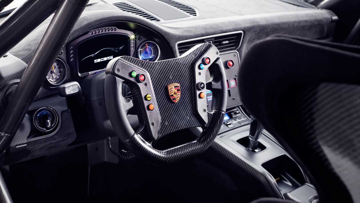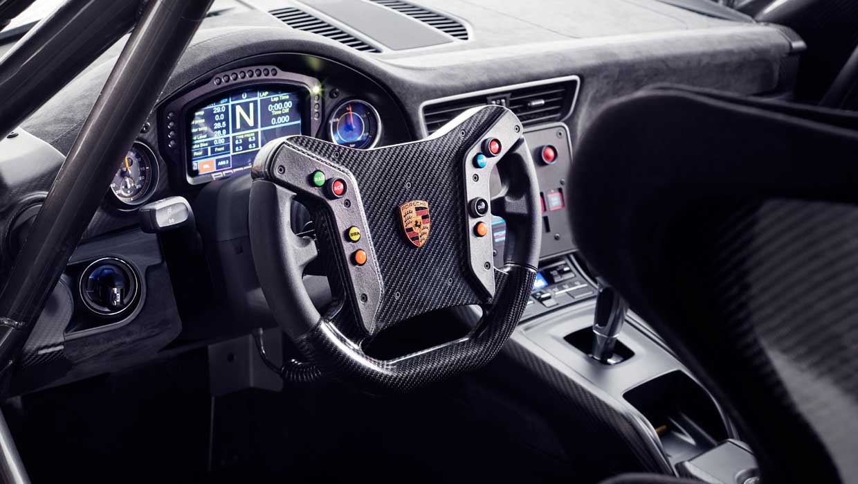 Porsche says lots of details on the car are a salute to winning racers of the past. The wheels are meant to remind of the 935/78. The end plates on the rear wing have LED lights adopted from the 919 hybrid LMP1 racer. The side mirrors are from the current 911 RSR that won at Le Mans. Exposed titanium tailpipes are modeled on those from the Porsche 908 from 1968.