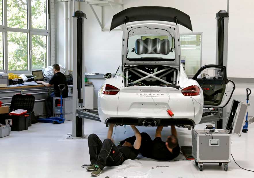 The road racer used front suspension from a 911 GT3 and the same rear suspension as the street Clubsport, it's not clear if suspension changes were made for the concept. The road race GT4 Clubsport sells for $165,000.