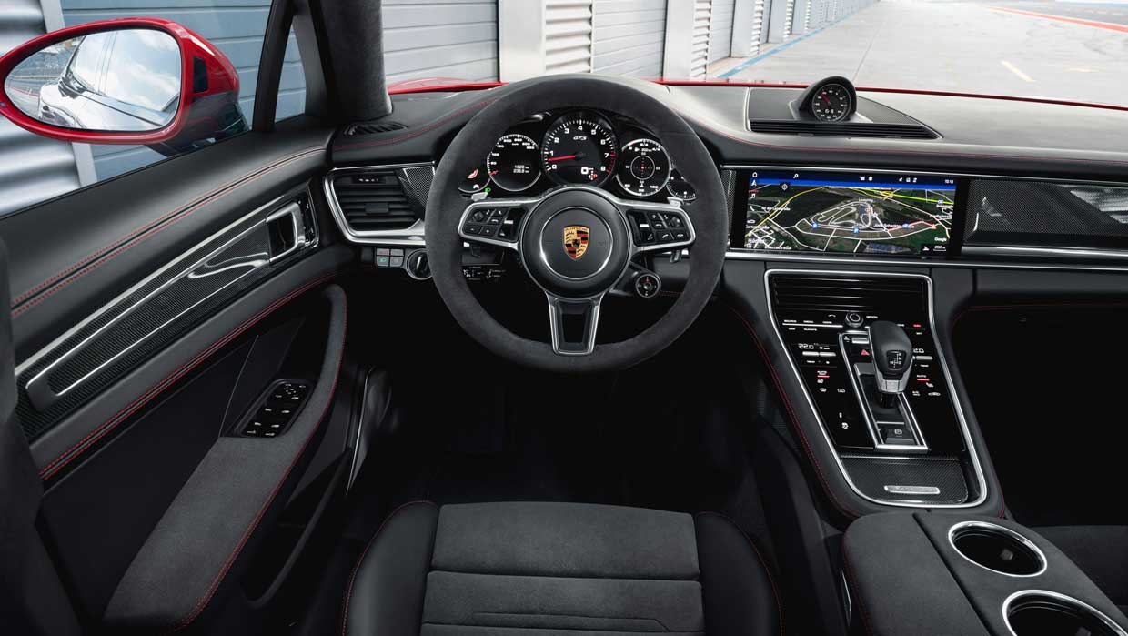 Top speed for the Panamera GTS is 292km/h and the Panamera GTS Sport Turismo can reach 289 km/h. Both cars have the Porsche Traction Management all-wheel-drive system and use an 8-speed PDK dual clutch gearbox. GTS models get adaptive air suspension with three-chamber technology standard.