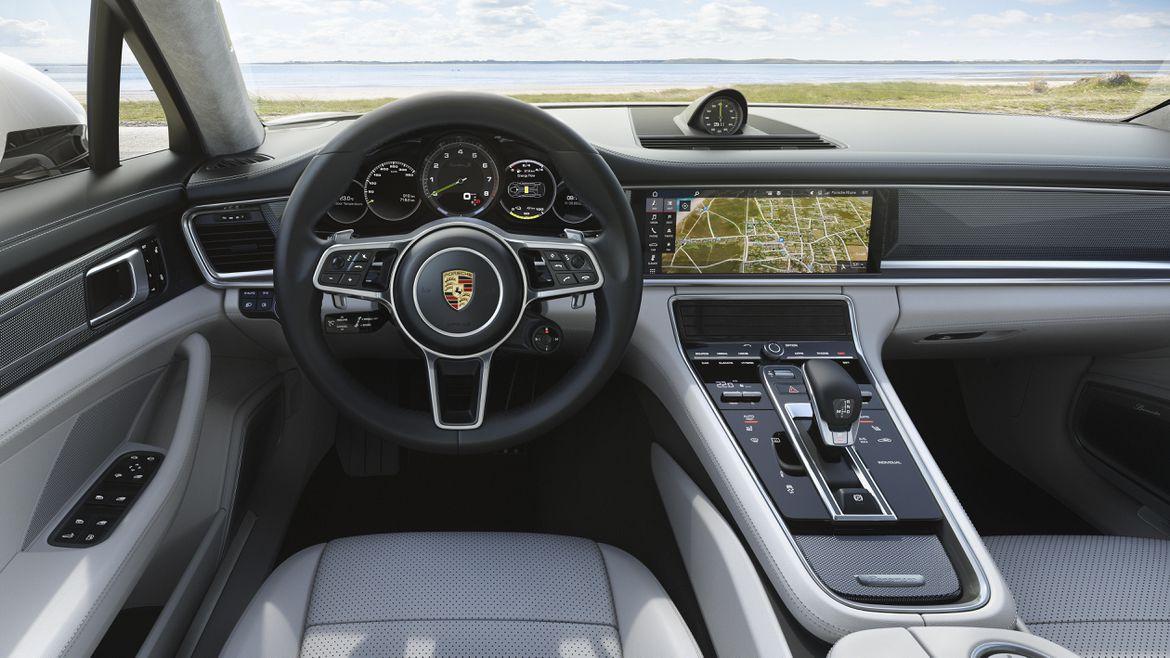 The electric motor is powered with a liquid-cooled lithium-ion battery with 14.1 kWh of power inside. That battery needs 12 hours to full charge using a 120V 10 amp connection. An optional 7.6 kW on-board charger is available for 240V 40 amp charging in less than three hours. The car has all the cool tech of the second generation Panamera with driver assistance systems and the Porsche Advanced Cockpit.