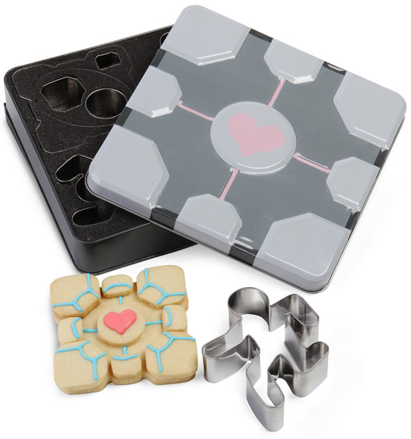 Then there's Portal Cookie Cutters – made so that you can hit the button whenever you like, and better yet with your tongue than your foot, blasting your way through levels of deliciousness as you create additional cookies also in the shape of the plain man silhouette. Of course then there's the all-powerful plushy in the shape of a Turret complete with sound features – terror for the baby! And if that's not scary enough for you, you can grab a full-sized portrait of Cave Johnson, talking to you and everything from any wall you like!