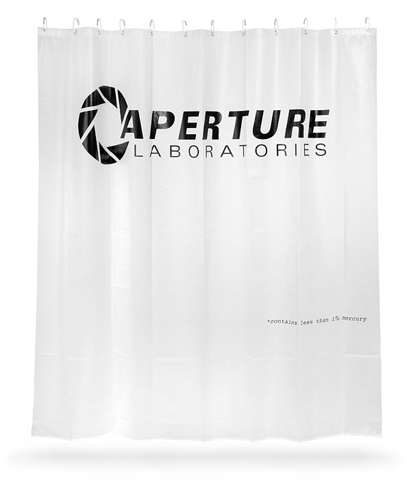There's a Wheatley LED flashlight as well as another turret in LED flashlight form, this time also with some fun sounds go go along with it. Portal 2 coasters, Black Mesa mugs, and yes of course, an Aperture Laboratories Shower Curtain. Grab it now instantly. Any nerd would approve.