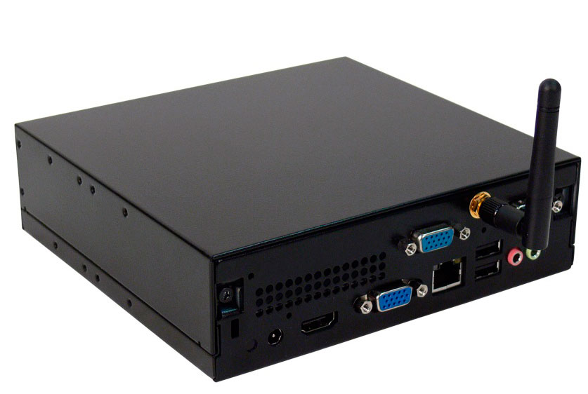 The rugged all aluminum chassis measures about the size of an optical drive. Despite its constricted space, the Stealth is loaded with desktop-grade connectivity with Gigabit LAN, Wi-Fi 802.11g, 4-USB 2.0, Serial, 2-VGA Video, Audio and HDMI ports. The board supports 3D GPU with memory expandable up to 4GB, and has a built-in 2.5-inch anti-shock hard drive slot.