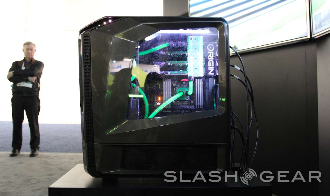 Also make note that the box you're looking at here is fully customized by the folks at Origin, and is one of four new gaming PCs introduced by Origin this week. There's also a mid tower for gamers clued the Millennium, and both the Genesis Pro and Millennium Pro built as workstations, believe it or not – really hardcore looking workstations. These aren't Battleboxes, but they may as well be.