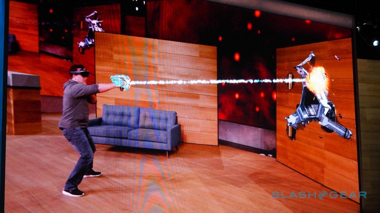 Microsoft shows off a game by the name of Project Xray with their mixed reality headset HoloLens. This video game shows off what virtual reality, augmented reality, and holography can do when mixed implicitly. In this game, users are invited to take part in a first-person shooter in which a new controller is introduced into the HoloLens equation, one where this controller overlays a holographic gauntlet onto its user's hand. From there, monsters begin to emerge from the walls and the blasting begins.