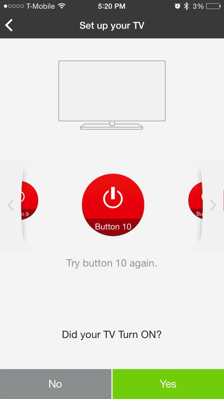 Set-up was a bit clumsy, which is directly related to app navigation. With a little tweaking on the back end, those problems will go away. Search for your TV make, and the keyboard and search bar don't respond once you've selected the right one (go away, FirstResponder).