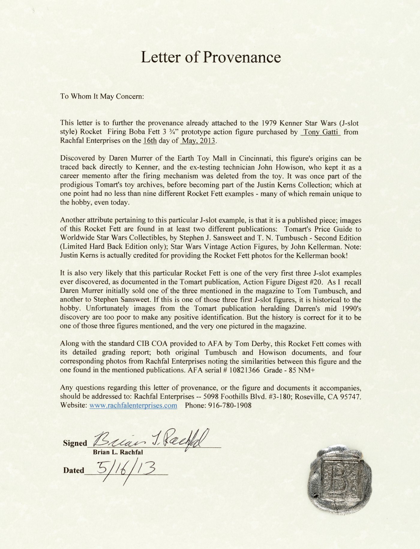 The Star Wars Boba Fett Rocket-Firing Prototype (J-Slot) AFA 85+ NM+ Action Figure up on the auction block right now is amongst the rarest of the prototype action figures in the world – of this sort of notability, anyway. Surely there are prototypes of action figures that only see one or two prototypes made and are destroyed – no big deal. But here we've got something special.