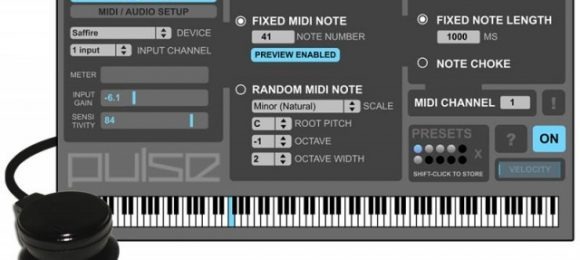 At the moment this whole system works with Mac OS X 10.6 and 10.7, while a M4L version is available for Windows and Ableton Live users on request. You can either set a series of notes in the Pulse Surface Controller System or grab a generated set of notes randomly along a scale. You'll be able to purchase the system at PulseController.com for $59.00 USD for the basic version (with $5 shipping) or there's a $64 USD version which includes an adapter so you can plug into a 1/8" audio input.