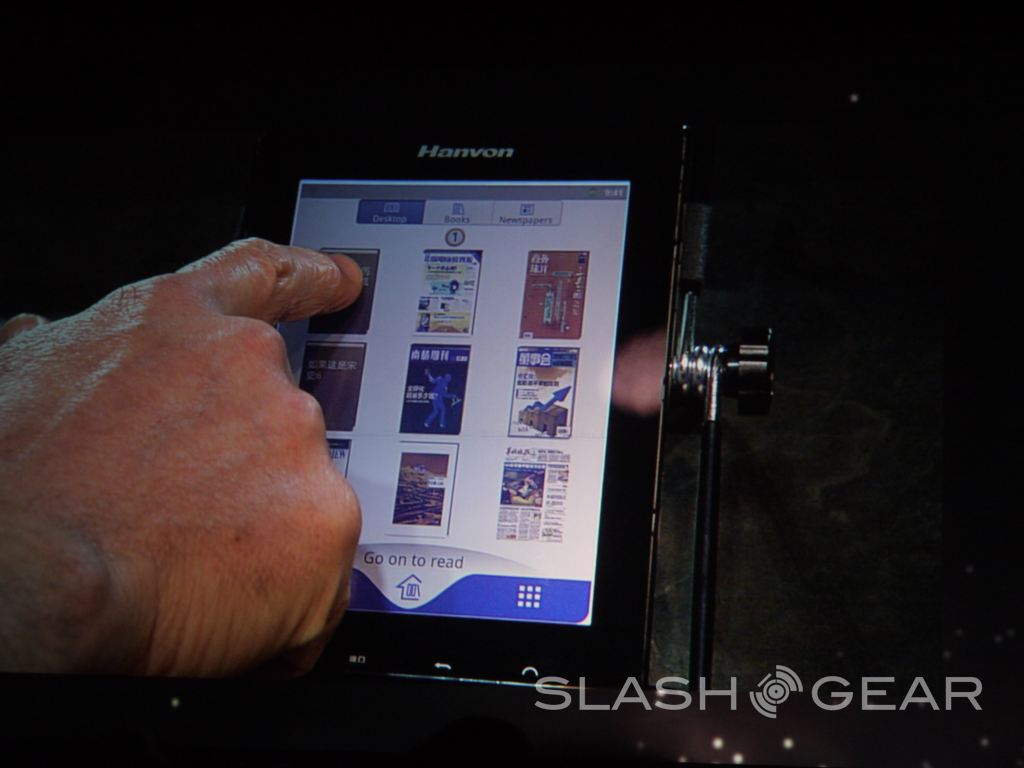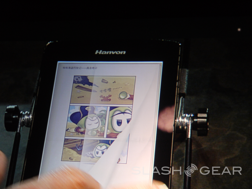 We've mentioned Qualcomm's mirasol display technology multiple times here at CES and even received some hands-on with an already available model and those links are all available below. What we have here is the brand new Hanvon that is being touted as the "world's thinnest and lightest color e-Reader"