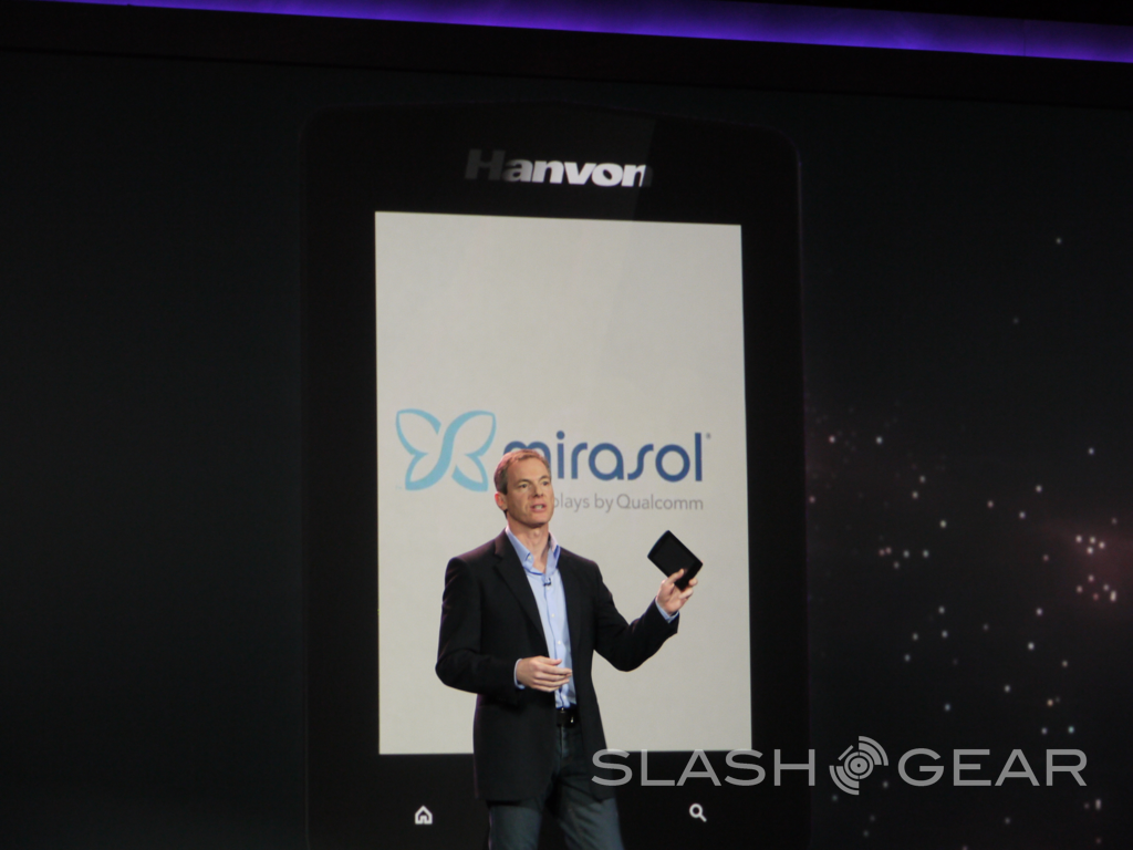 At the opening Keynote at CES 2012 Qualcomm revealed a new color e-reader based on their mirasol display technology. Produced and released by Hanvon this is the thinnest e-color display around and we have a few snapshots to show of Qualcomm CEO Paul Jabocs showing it off for the crowds. Here's what you can expect.
