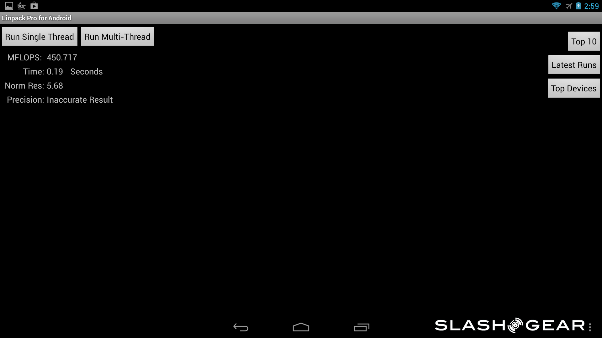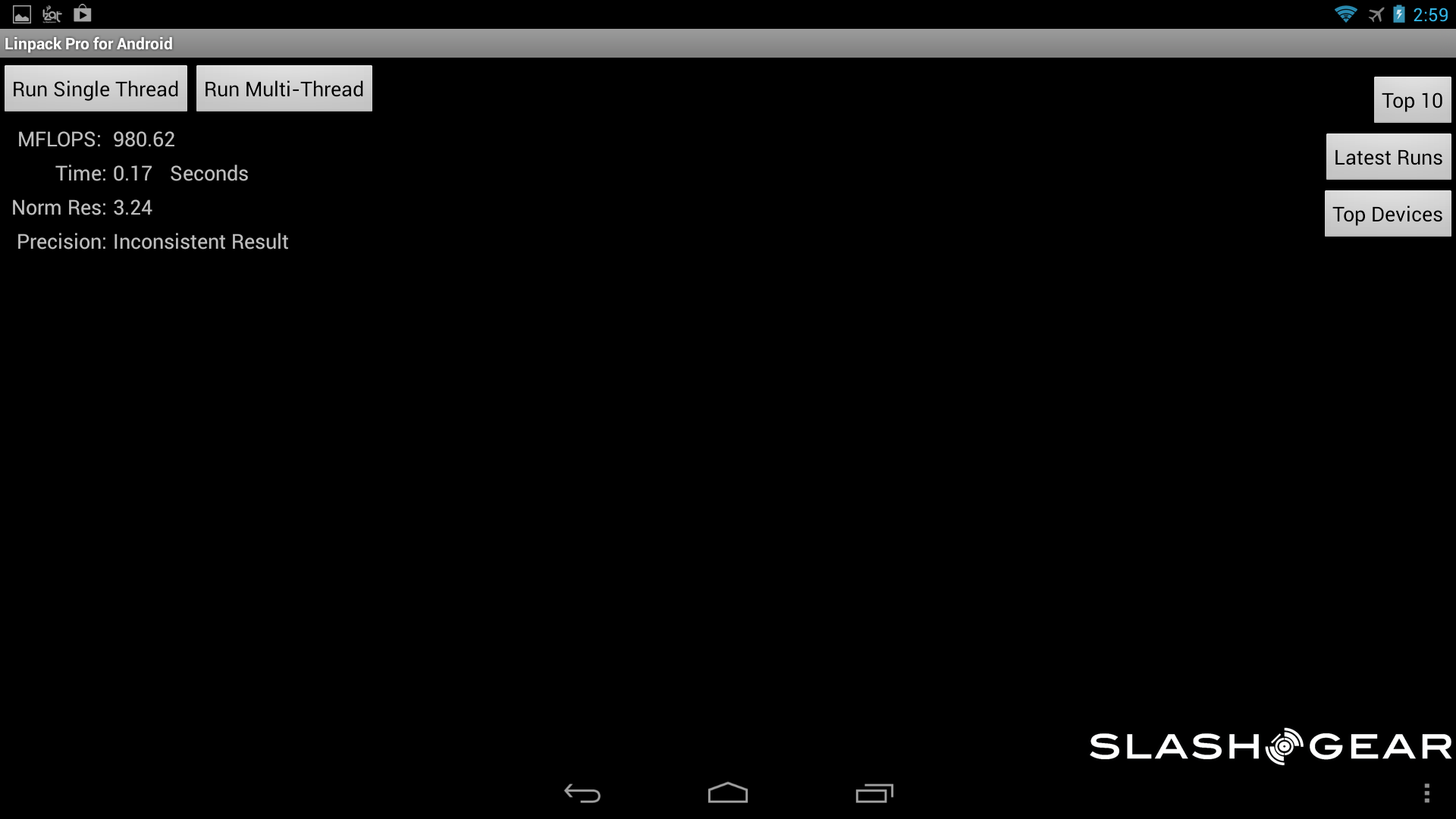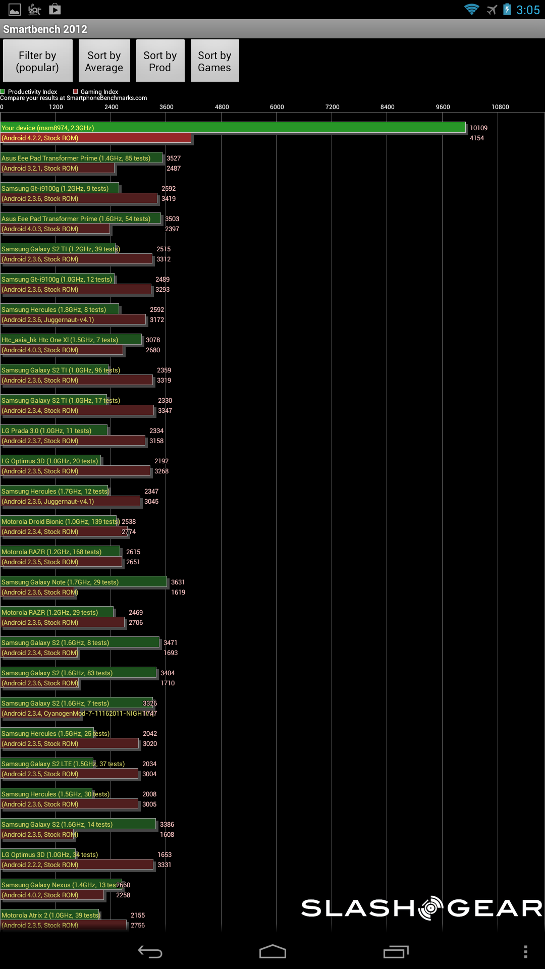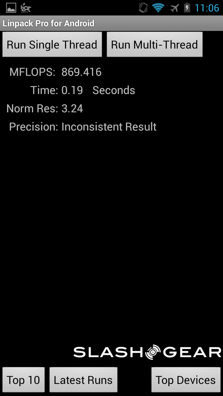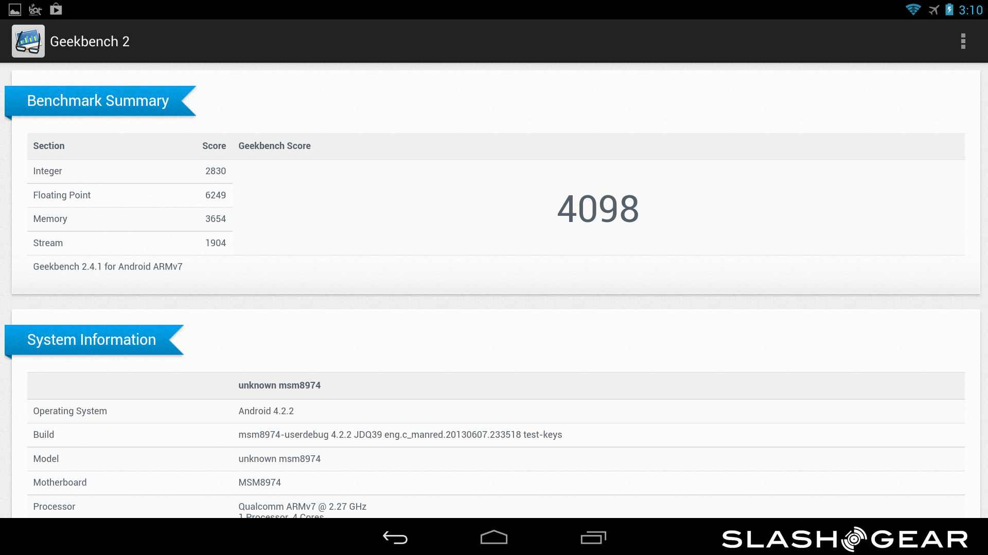 As far as the smartphone goes, this one also has the quad-core Krait 400 CPU with an Adreno 330 GPU and 2GB of RAM. The difference here is in the display, which is 4.3-inches at a resolution of 1280 x 720. Aside from the smaller display, the results were just as impressive to see as from the tablet kit. Once again, feel free to dive into the gallery below to check the scores from your favorite benchmarking application.