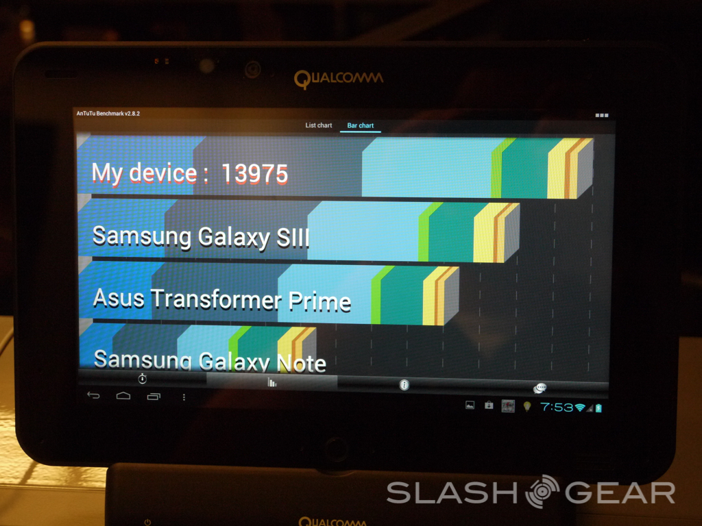 While this is just a MDP device geared at developers, it's already clearly beating the Nexus 7, and Samsung's Exynos 4 Quad powered Galaxy S III easily. These devices don't give us an idea of battery life so that is still up in the air, but Qualcomm promises "all-day battery life." For now take a quick glance at the results below. We'll continue to update with additional screenshots and more tests, but Qualcomm has another winner here to top the charts. We can expect to see the new S4 pro quad-core arriving in devices later this year.