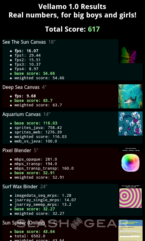 With this test, manufacturers are testing both he performance and the stability of their devices. Our good pal Sy Choudhury, Qualcomm Director of Product Management informs us that while Vellamo was originally developed for internal testing and was indeed used by Qualcomm workers to test as many aspects of web browsing as they could, proving over time to be a fair and non-bias set of tests that'd work to improve not only devices working with Qualcomm chipsets, but any device, as proven by the results of the tests you find after collecting your final score in the test.