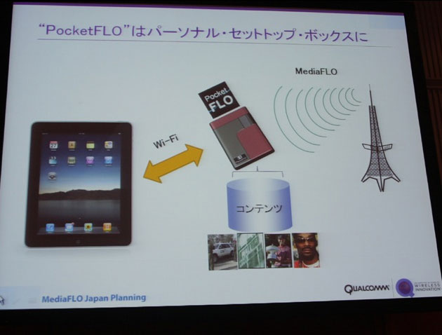 The system will apparently use an app on the iPad for viewing, the PocketFLO device can record the programs, and Twitter is integrated for communication. Qualcomm CEO Paul Jacobs has also recently stated that the company has no plans to spin off MediaFLO as reports have recently suggested. Jacobs said, "We are not shutting down MediFLO."