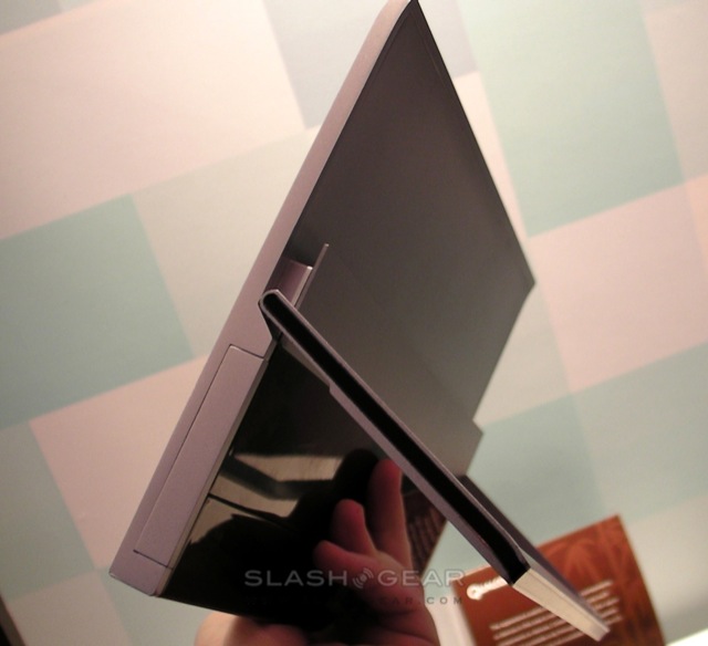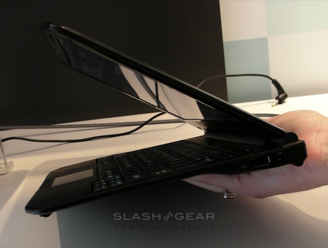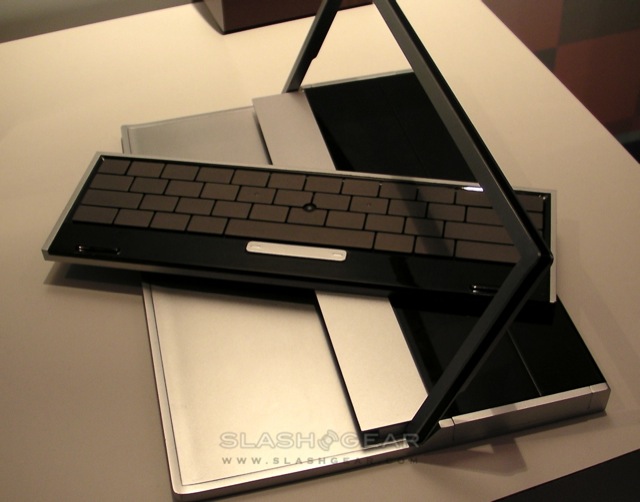 As for the concept Smartbook/Tablet hybrid, Qualcomm have demonstrated it before but say they've been surprised by the ongoing positive feedback. The idea is to have a touchscreen display panel with integrated stand that can be used with a wireless keyboard/mouse peripheral on the desktop, with that keyboard slotting into a nook on the back for in-hand use. Like the Quanta machine, it would offer all-day battery life and WiFi, Bluetooth and 3G connectivity.