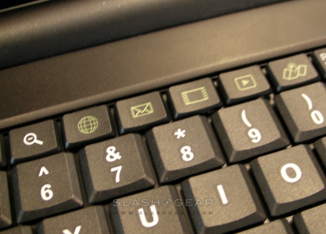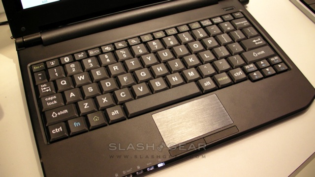 The Quanta machine looks ostensibly like a regular netbook, but it's considerably thinner – helped by the fact that it's based on Qualcomm's Snapdragon chipset and thus requires no active cooling fan. Its display isn't a touchscreen – we left fingerprints all over it trying to find out – but Quanta have reworked the keyboard to offer one-touch access to not only the homescreen (which still offers three customisable panes) but the slide-out programs menu, key apps like the browser, and individual control over WiFi, 3G and Bluetooth.