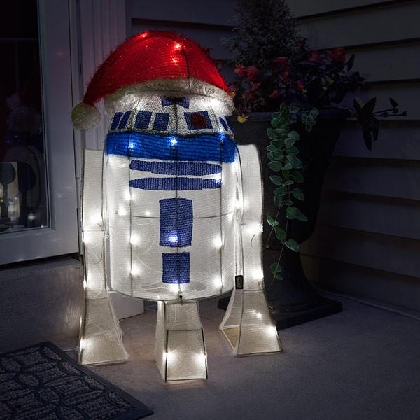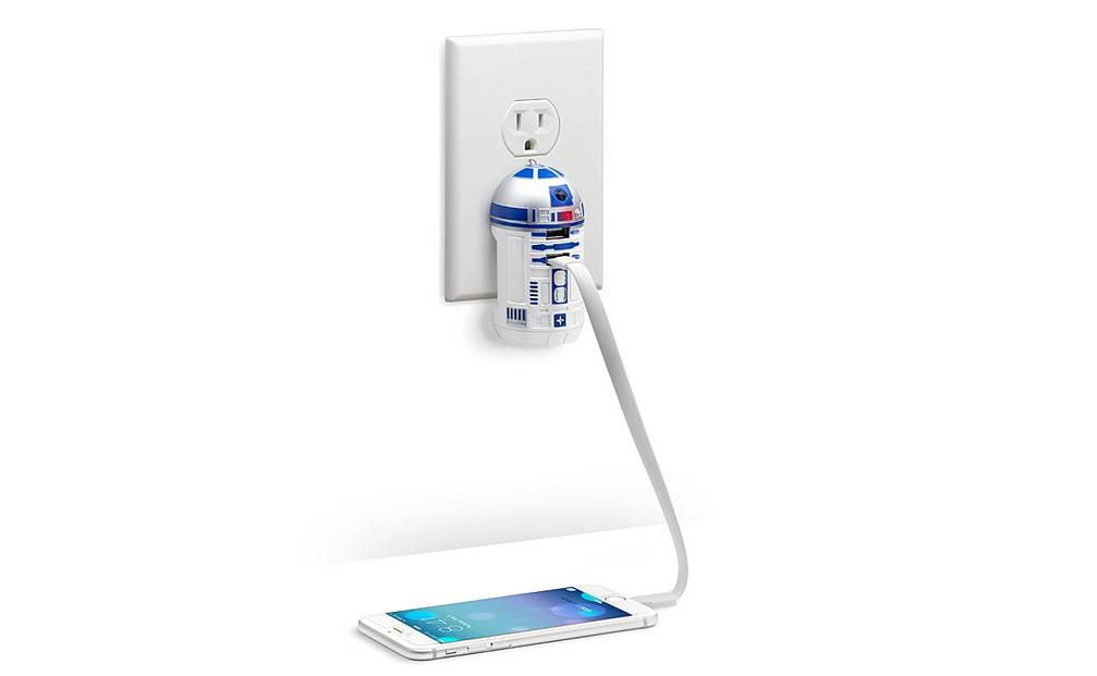 The lawn ornament is 29-inches tall and features 50 small lights; price sits at $89.99 USD. If a static decor item isn't to your tastes, there's also the R2-D2 wall charger, which is exactly what it sounds like — a charger for your phone, Kindle, and other gadgets, only it's in the shape of R2-D2.
