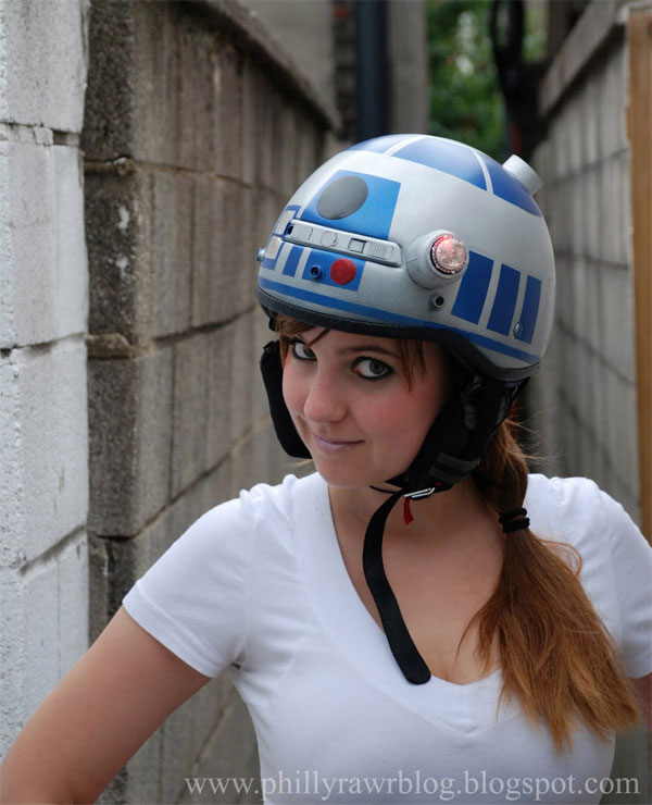 I am a big fan of Star Wars as are most geeks. I think that it's really cool to see girls that are fans of Star Wars too. It's easy to think of Star Wars fans as a bunch of guys, but that isn't the case. Check out the is hottie named Jenn Hall that created her own Star Wars R2D2 theme helmet for riding her scooter. Hall is a pastry artist by day and geek by night.