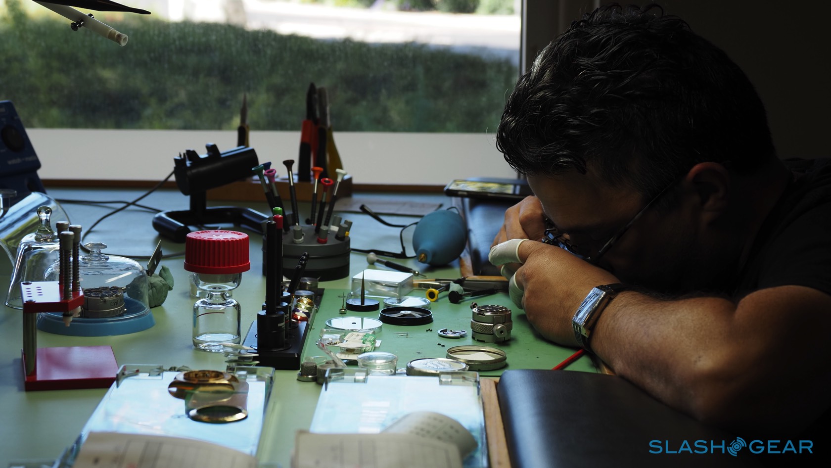 Slowly, carefully, tiny pieces became a beautiful timepiece once again. "This is the best relume dial I've ever seen in my life," Sal told me, as we examined James' handiwork under a super-high resolution microscope, "and it's on par or better than what you'd expect to see leaving the Rolex factory."