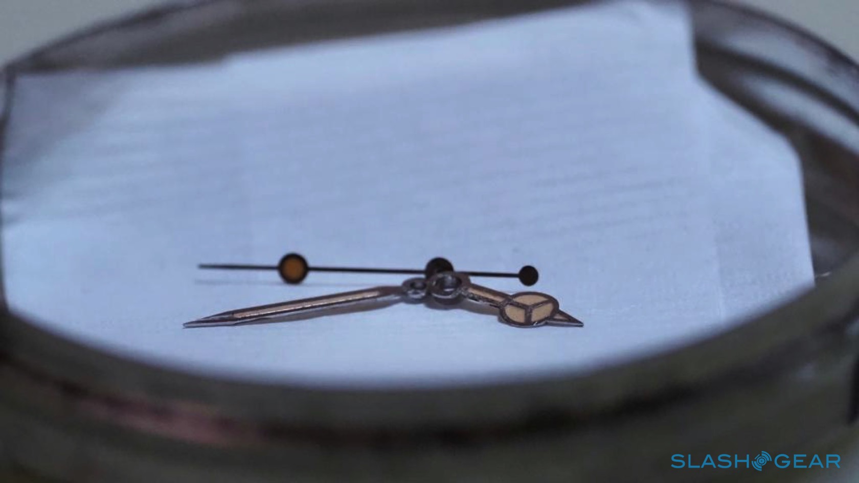 Even so, mine was to be only the second dial restored using Tritium. After poring over photos of James' handiwork, I knew I had to take the risk. Ron demonstrated his expertise in carefully removing the dial and hands – including the incredibly thin and fragile hour, minute, and second hands – so that I could package it up and ship it to James' studio in Northumberland, UK.